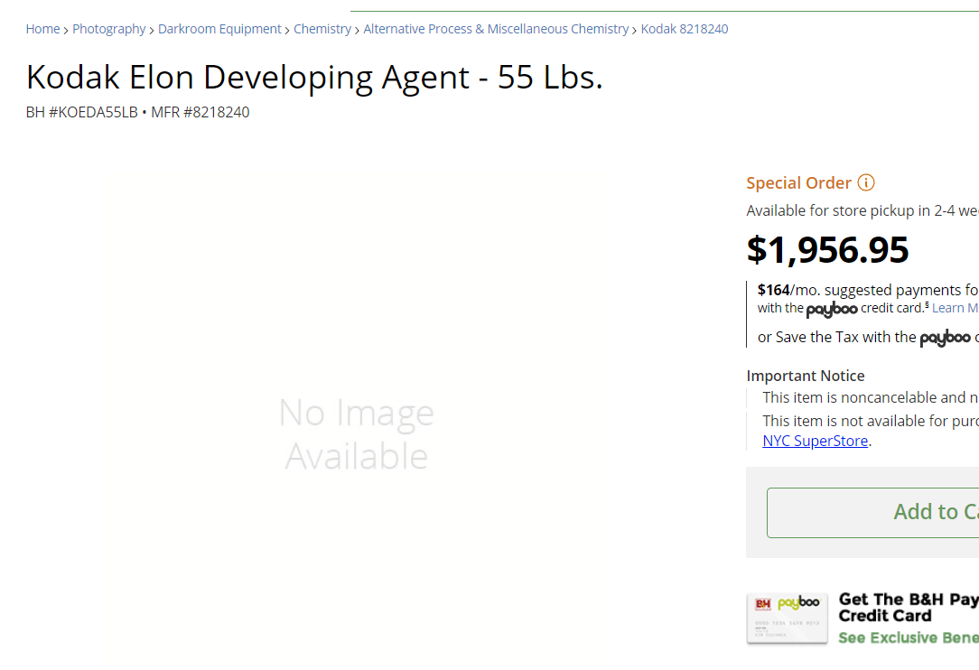 ... and one can buy 55 lbs of the Elon agent. For those of us who don't know Elon from a Musk, apparently it's hydroquinone