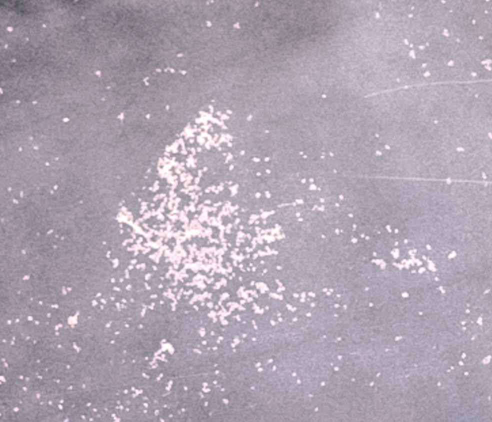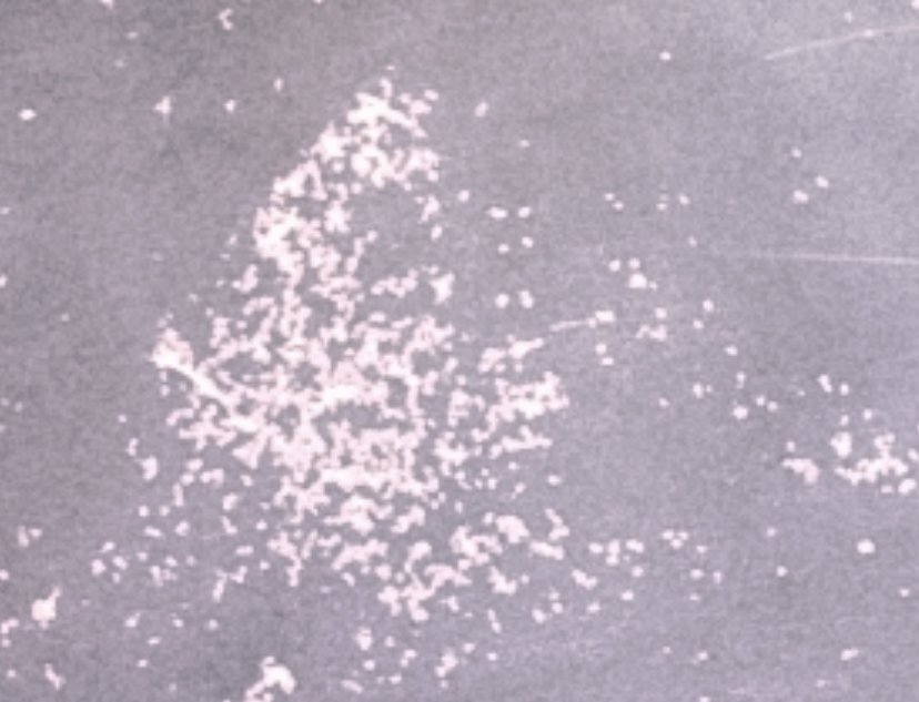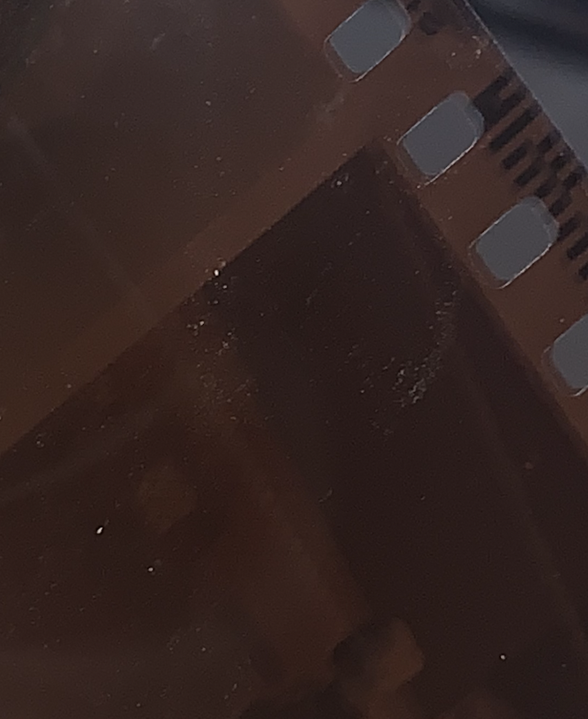 Pictured is the worst case scenario of the spots that turn up on my negative. I know the long strands are dust and I can deal with that much more easily but the deposits all over the negative have been a challenge.