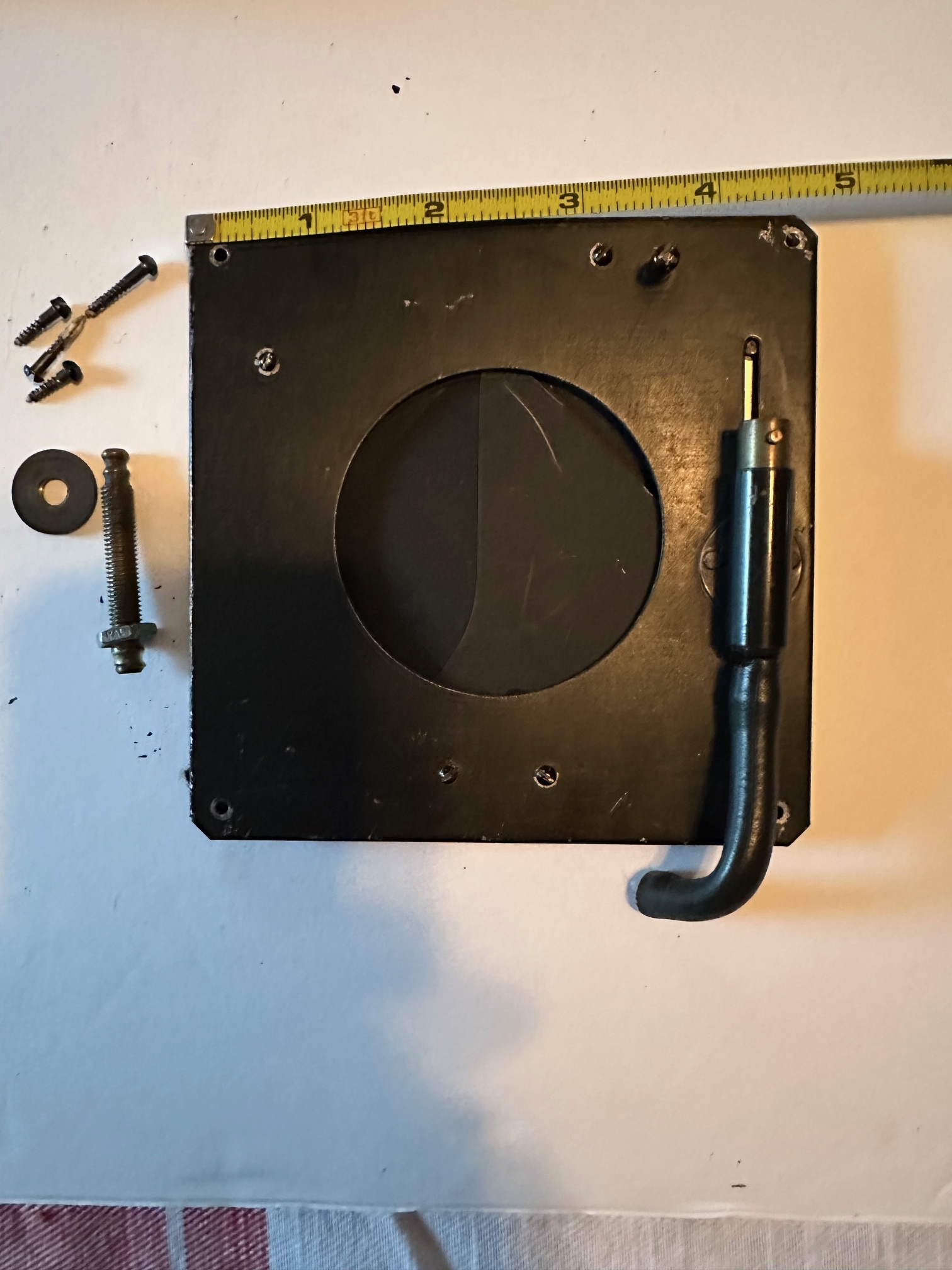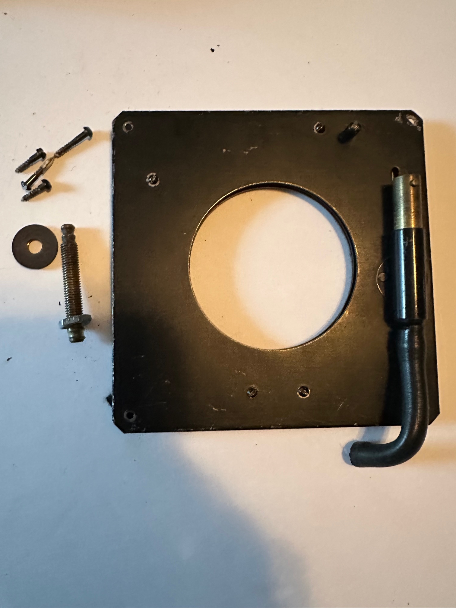 Packard Shutter, 4 3/4" square, 2 1/2 opening. Bulb and Instantaneous. No pin. Hose connector for lensboard.