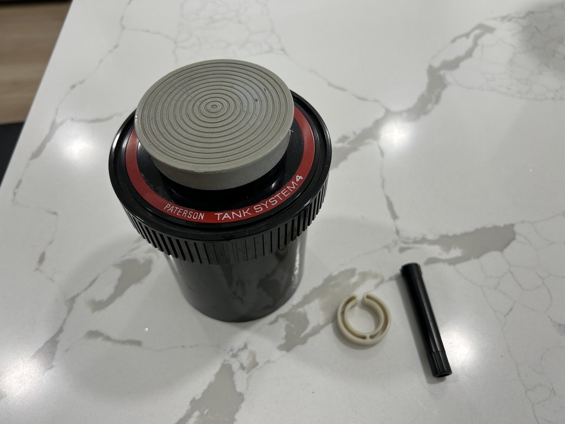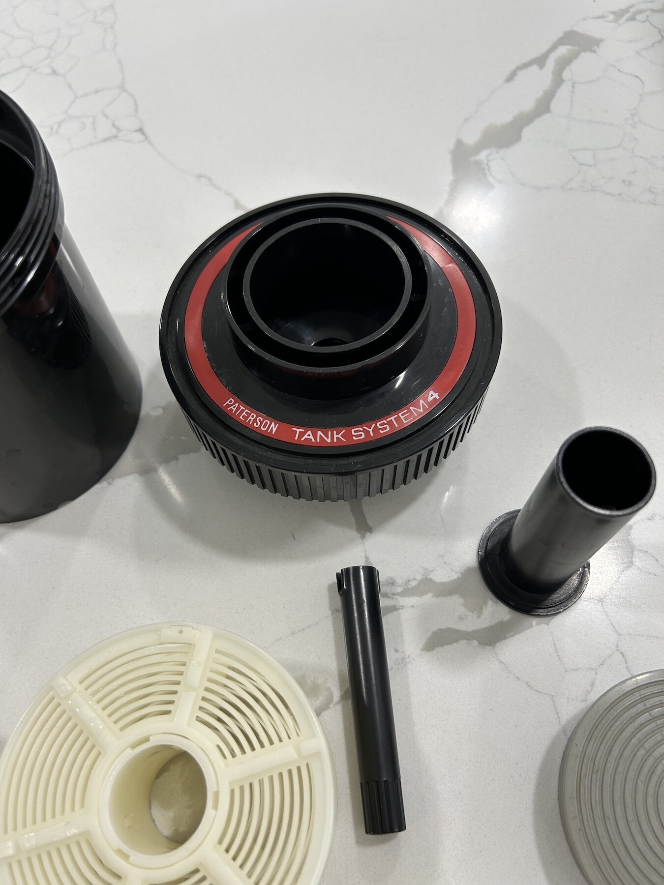 - One Paterson Tank System 4 set. The condition is used, but good.These are exceptionaly useful developing tanks and reels. The reels are for 35mm film. Made in England.