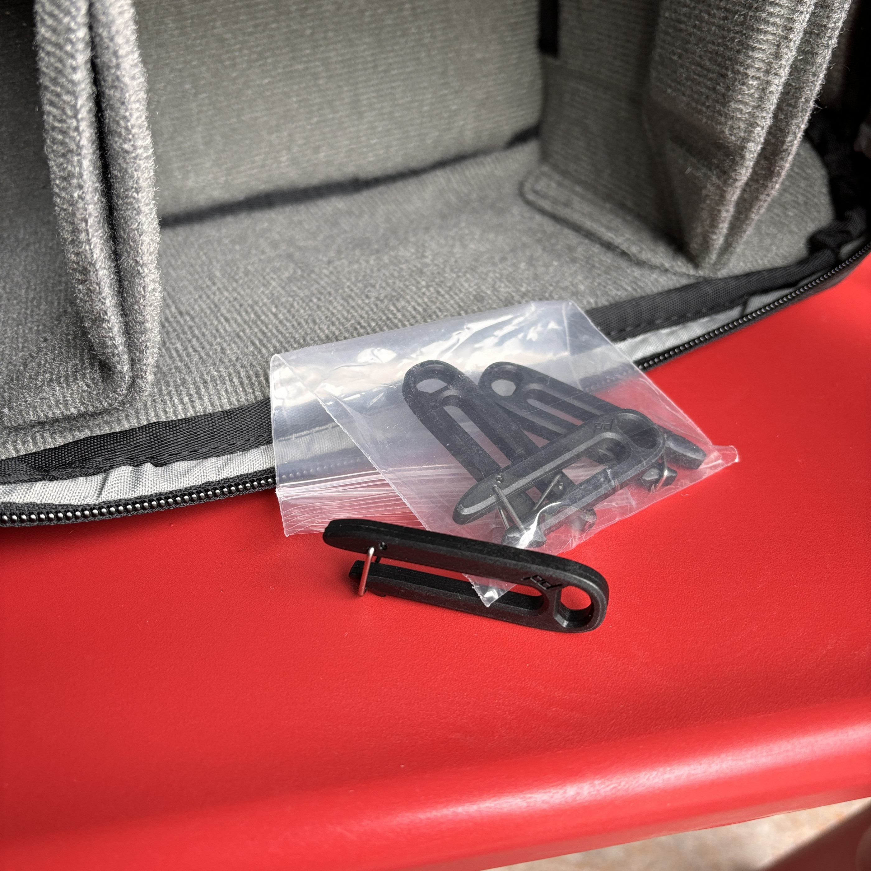 This comes with the cube, two movable/velcro dividers and unused clips for the loops.