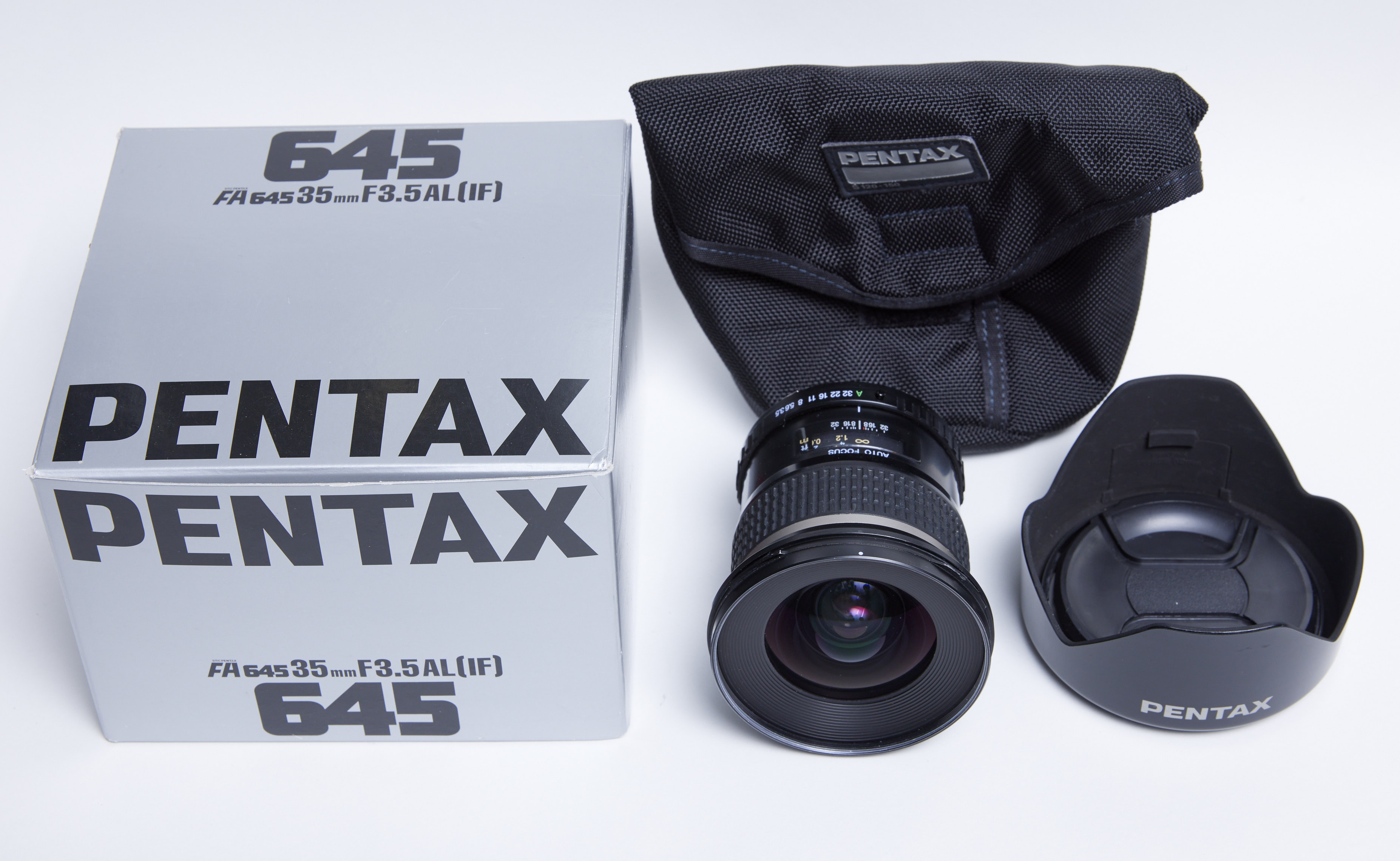 Pentax FA 35mm AF lens in original box and optically in very good condition. But there's a small piece wandering around inside, the focusing barrel has little play and autofocus slips / doesn't works at close distances. But can be used at infinity and image quality is good.