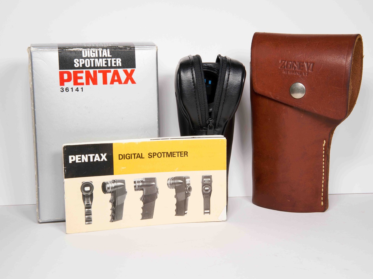 This Pentax 1 deg digital spot meter works perfectly. It was bought originally by my father-in-law, and I have been using it to date, so owned by just 2 people. Always well cared for. No issues. Comes with original box, manual, Pentax soft case, Zone VI leather holster. Lens has no fungus and no haze. Comes with battery- the battery compartment is clean and free of corrosion. Firm on price. $290 and I'll ship free to CONUS. Located in Colorado. If interested I can send more images.