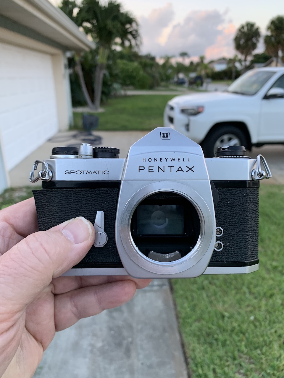 I am selling a Pentax Spotmatic. The shutter appears to fire at all speeds about right. The film advance works. The viewfinder is fairly clean. The self timer works.