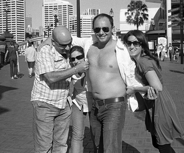 But sometimes you can have wonderful encounters with people. The group in the attached photo saw me shooting something else and seemed impressed with my style, poise and gear!! (yes, it was a Leica m6) Anyway, they badgered me to take their photos and struck a few poses. We had a good laugh, exchanged emails and I promised to send a copy. They were on their way back from the casino. So perhaps they'd had a win or maybe just decided life was enjoyable and to share the spirit. I've also had a few nice encounters with kids interested in looking under the dark cloth when I've been shooting 5x7 or 8x10 in busy public spaces. Always checked with the parents first of course but that has led to many pleasant interactions with strangers young and old.