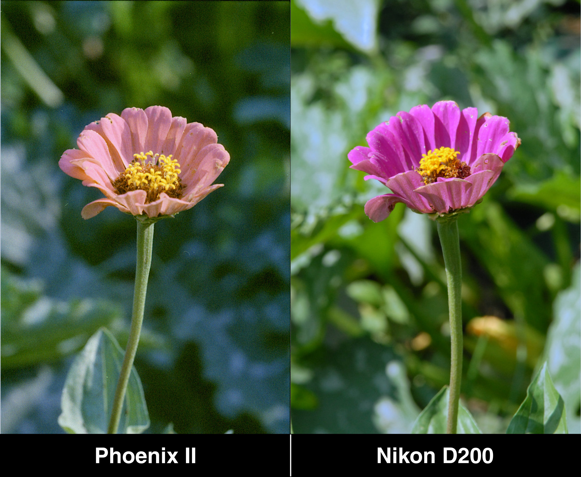 Color fidelity is better than Phoenix I, look at skins tones on colorcheker (first two top left samples) but there is still some of work to do on reds and magentas. Grain of Phoenix II is much better than Phoenix I, great job done by Mobberley guys, but is still far from the grain of Kodak or Fuji films.