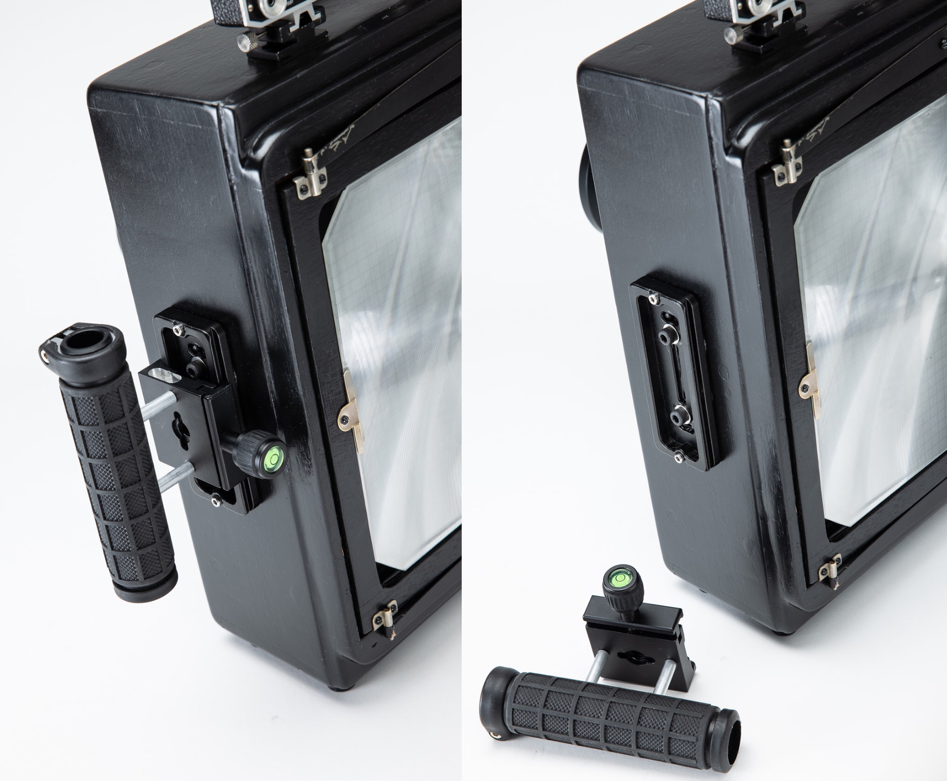 My second conversion of the incredible HARMAN TiTAN 4x5 pinhole into a lightweight 4x5 super wide point and shoot. Without a shoulder strap, the first conversion was a bit tricky to use alongside a DSLR. Using the same dual ARCA plate configuration that I figured out for an earlier camera, this camera now has a vertical tripod mount, side handle and shoulder strap mount that works perfectly on a lightweight camera like this one.