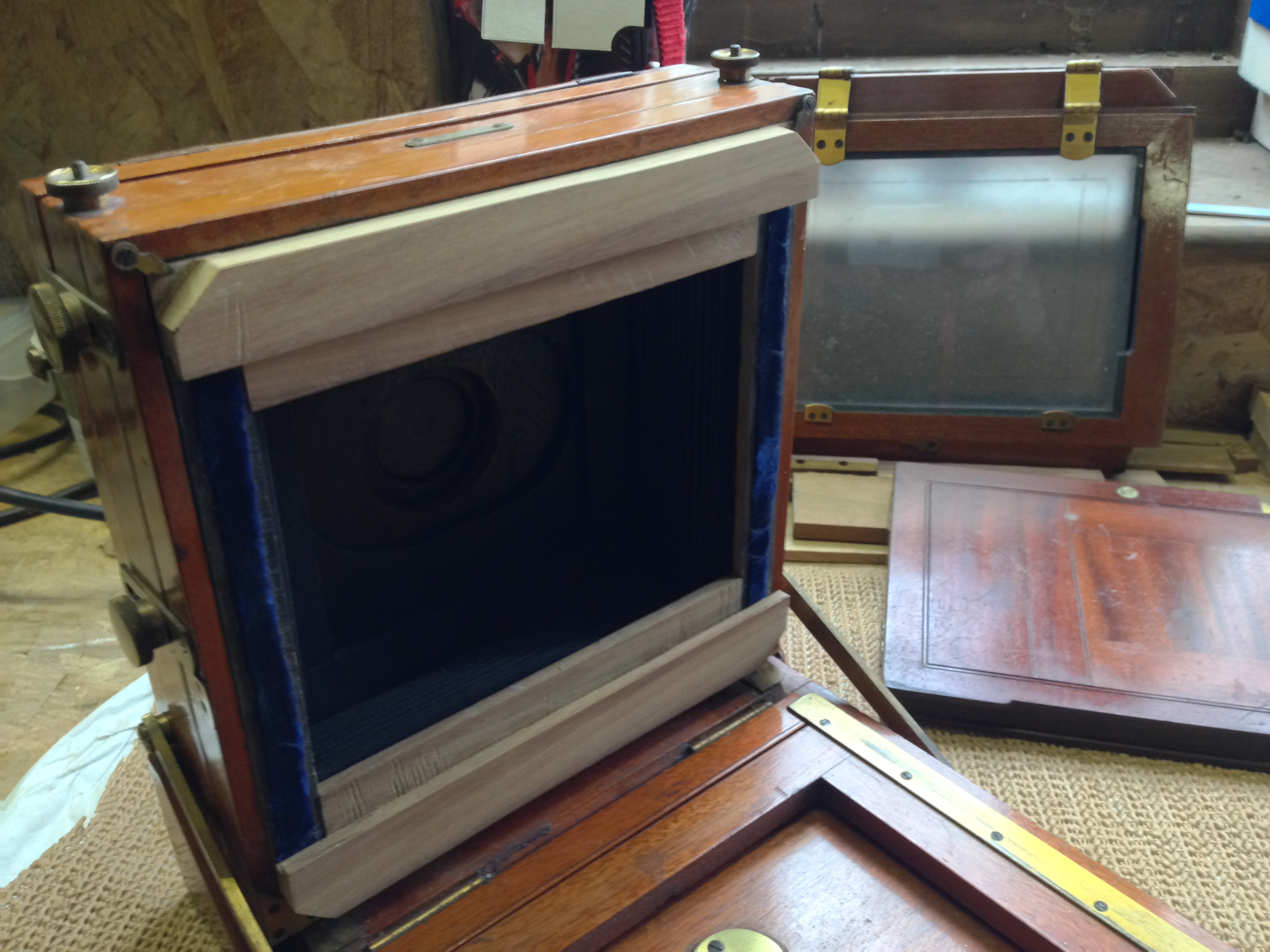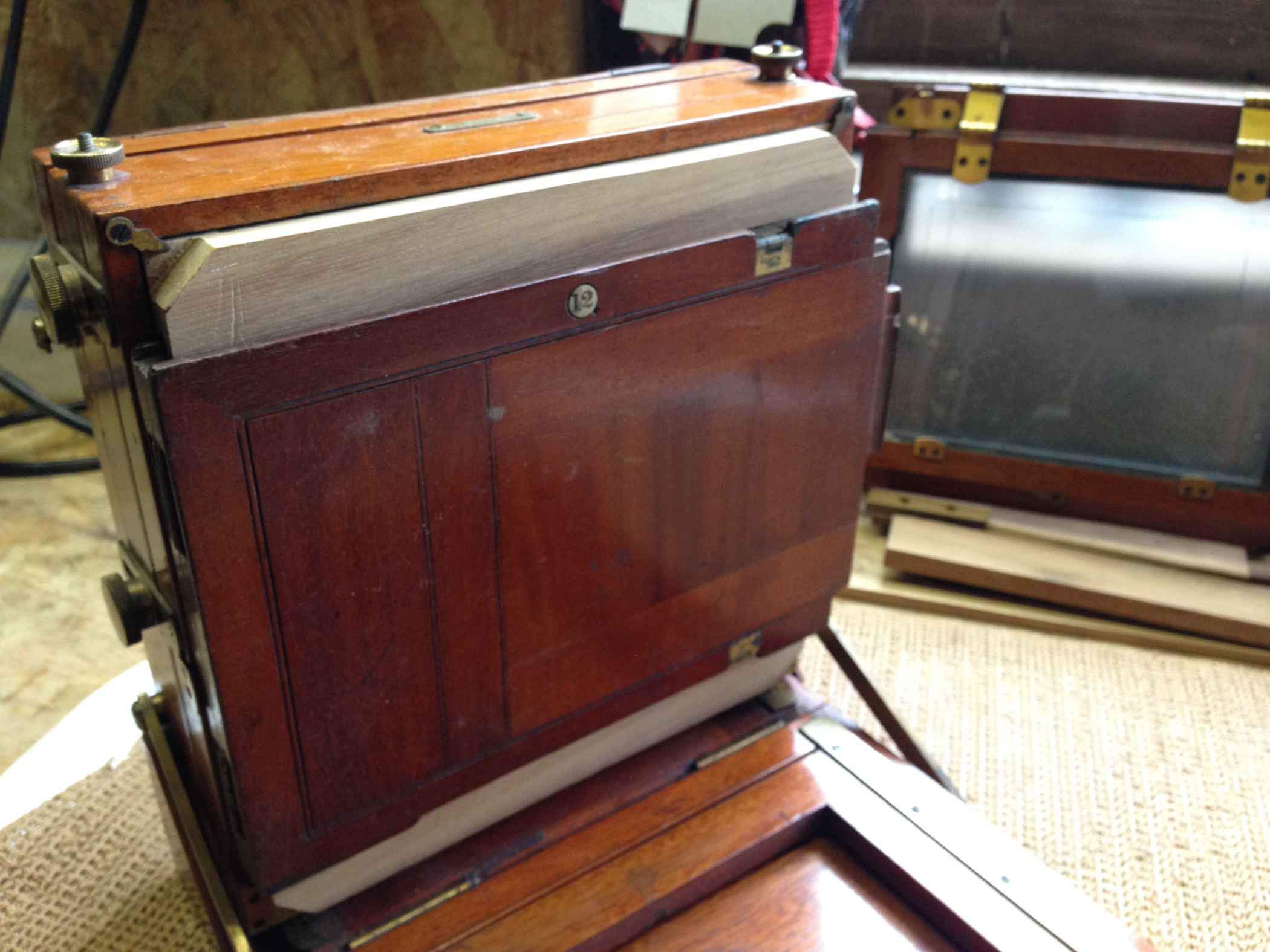 Just in the middle of making a second back for my E&T Underwood 1/2-plate camera (the first one allowed me to fit a 4x5 DDS into it). This one will allow me to fit the one wooden bookform holder that I have into it. I've bought some Foma 1/2-plate film and I'm looking forward to taking it out in the summer and then contact printing from it.