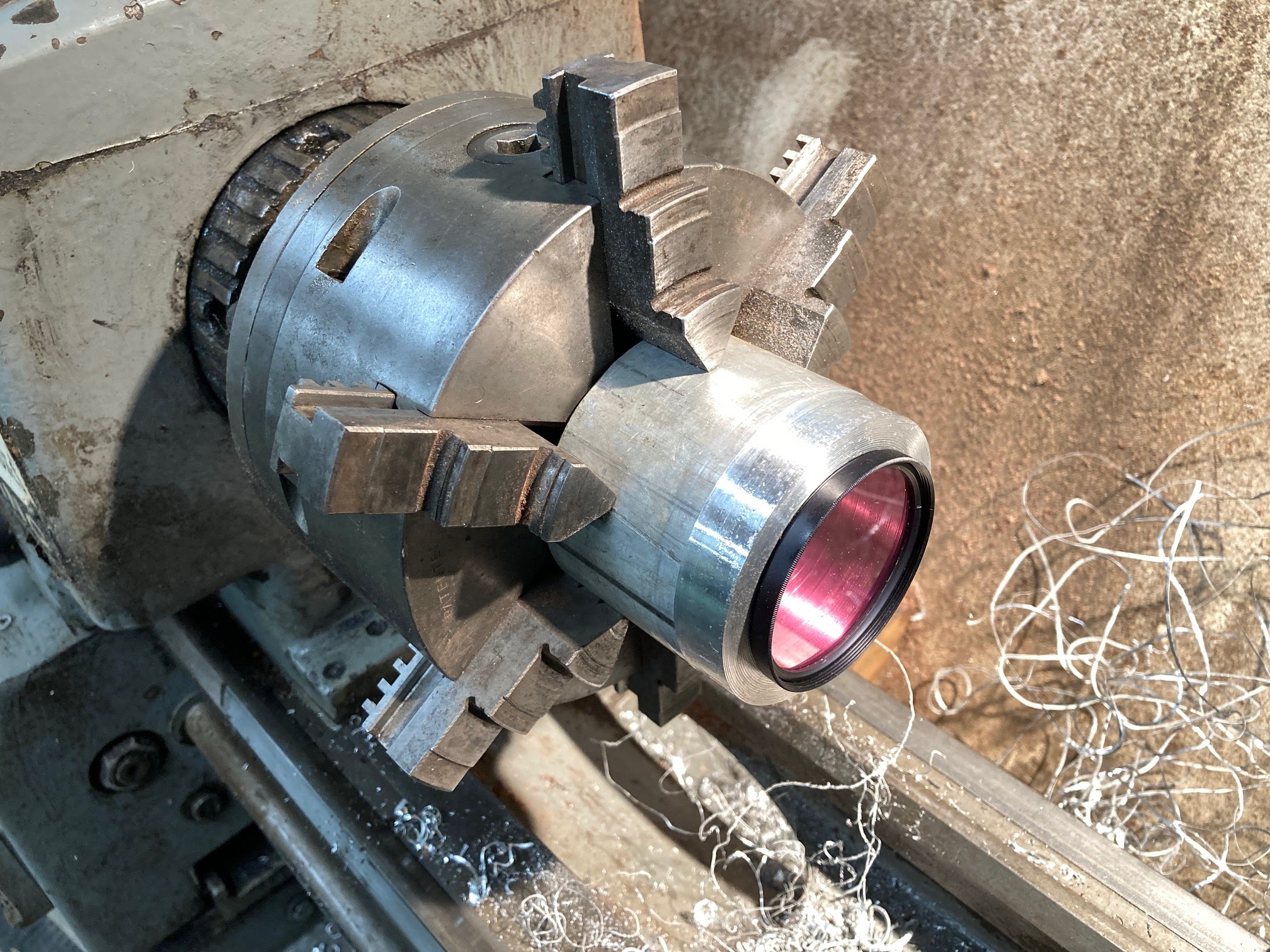 Since I shoot paper negatives I wanted to be able to mount a yellow filter to tame the contrast. Off to the aluminum stockpile. A few more hours on the lathe and this came out.