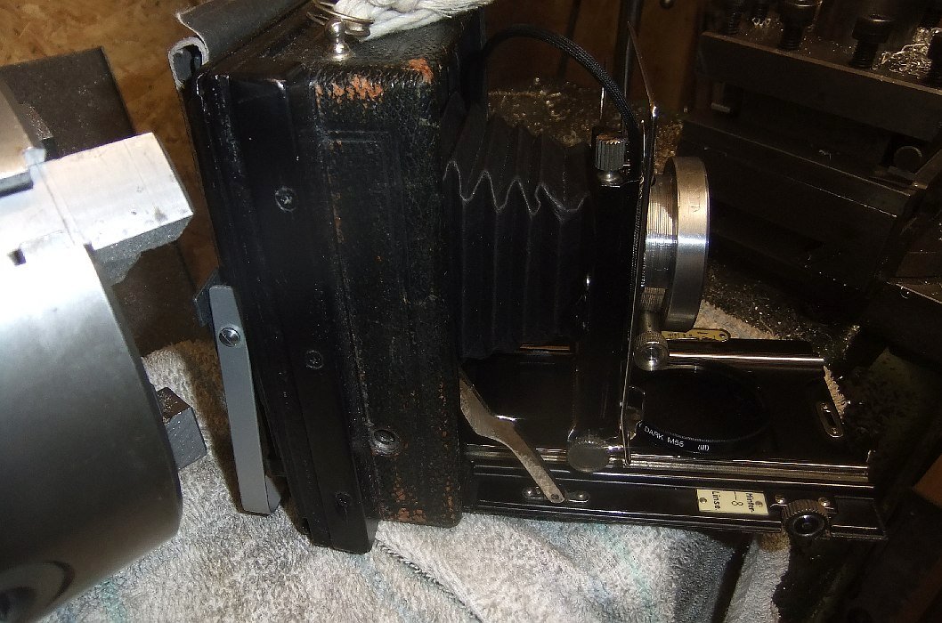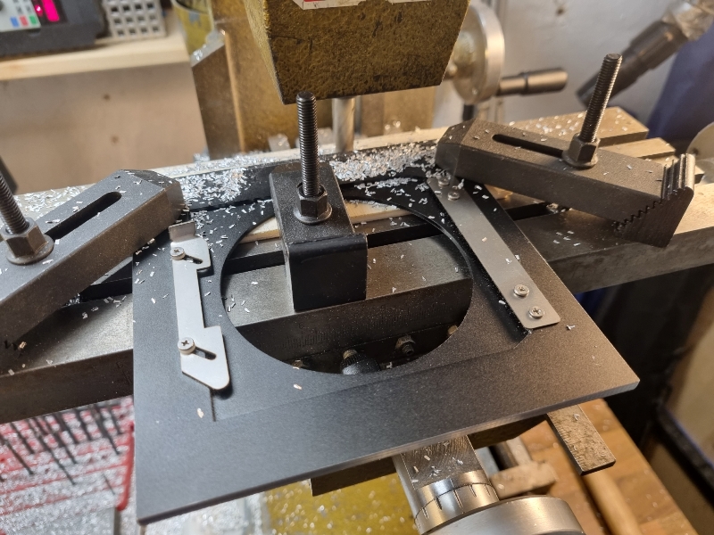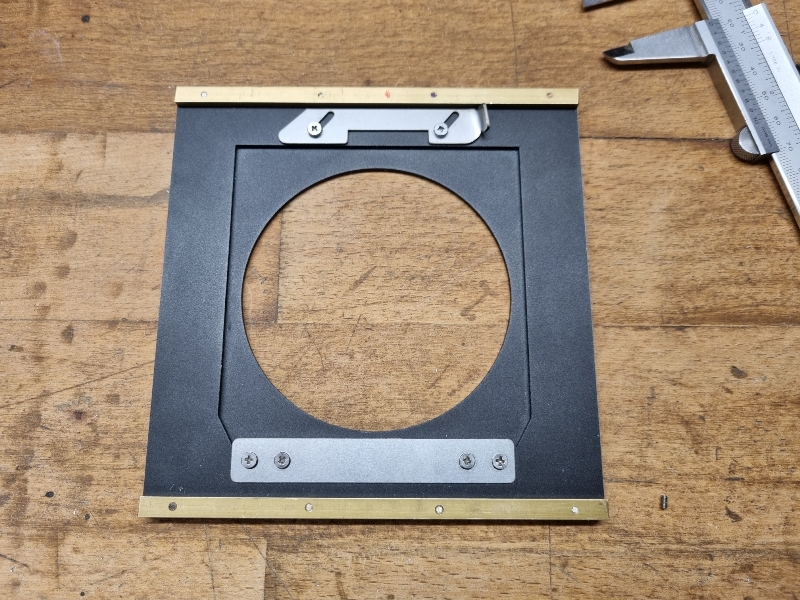 A lensboard adapter for my Mentor 13x18 to fit the Linhof boards.Starting point was a chinese adapter from Sinar to Linhof which I milled to size first.