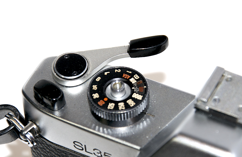 @Dan Daniel the shutter is controlled via the knobs. A previous version (with Bronica 50mm f2.8) used a self-cocking shutter which was nice but required a loop of cable release.