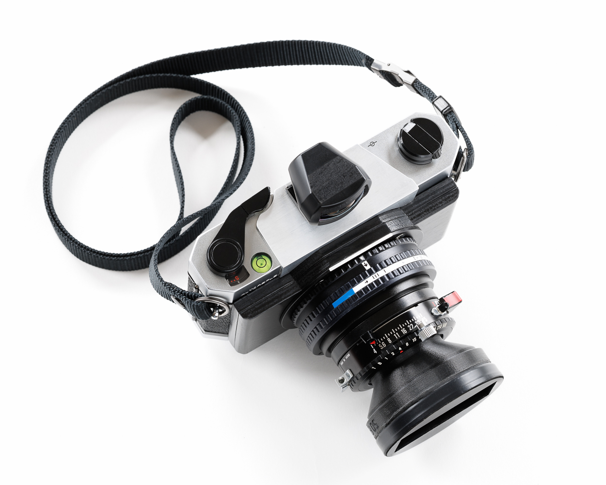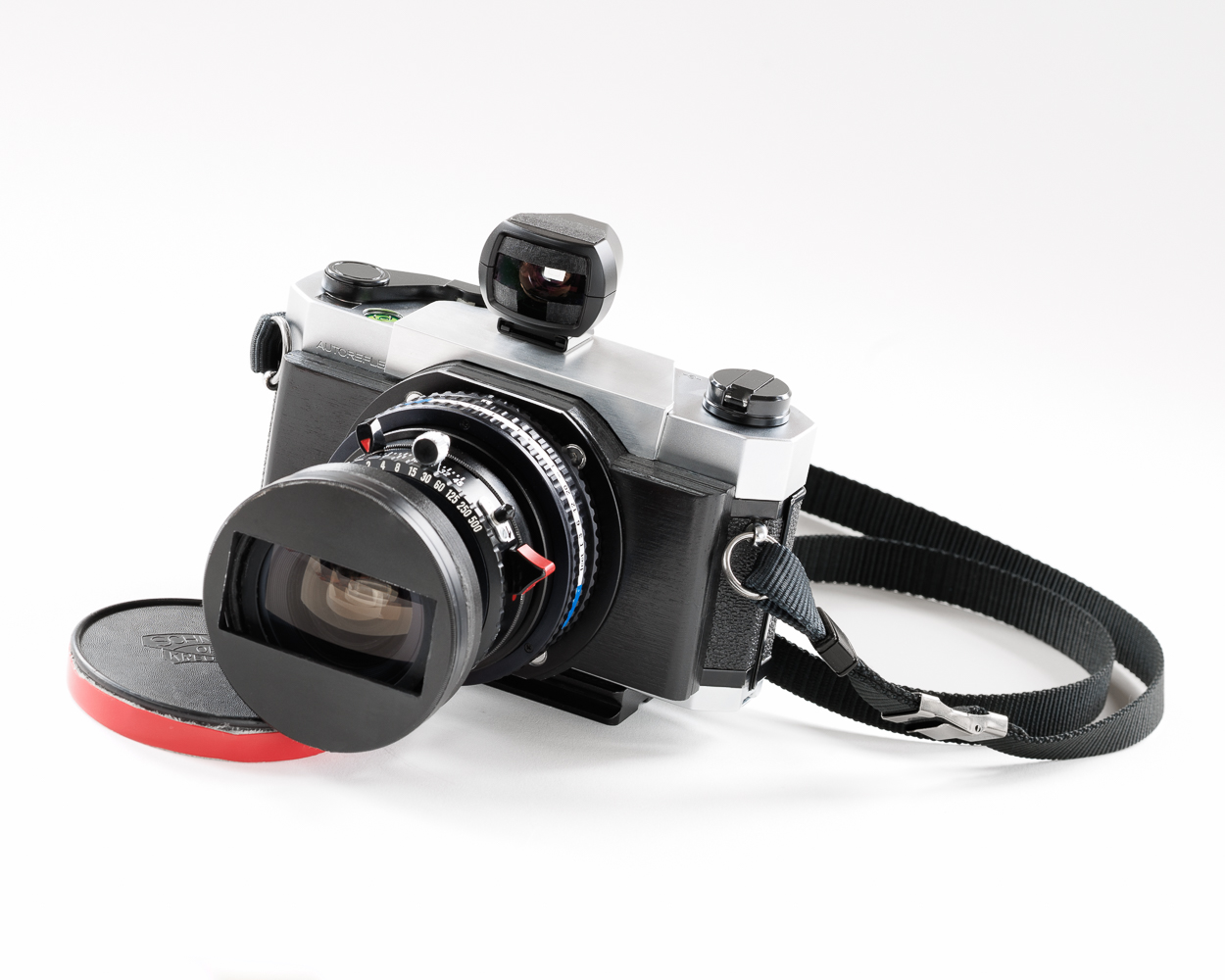 Finally finished a camera I started literally YEARS ago.The body is Konica Autoreflex A that is fitted with a helical mounted Zenzanon 40mm f/4 from the Bronica ETRs 645. This is the same lens that I used in the 'ZenzaBLAD', I sold off the Hasselblad SWC body that I had and kept the lens for this project. I'll post some test shots shortly.