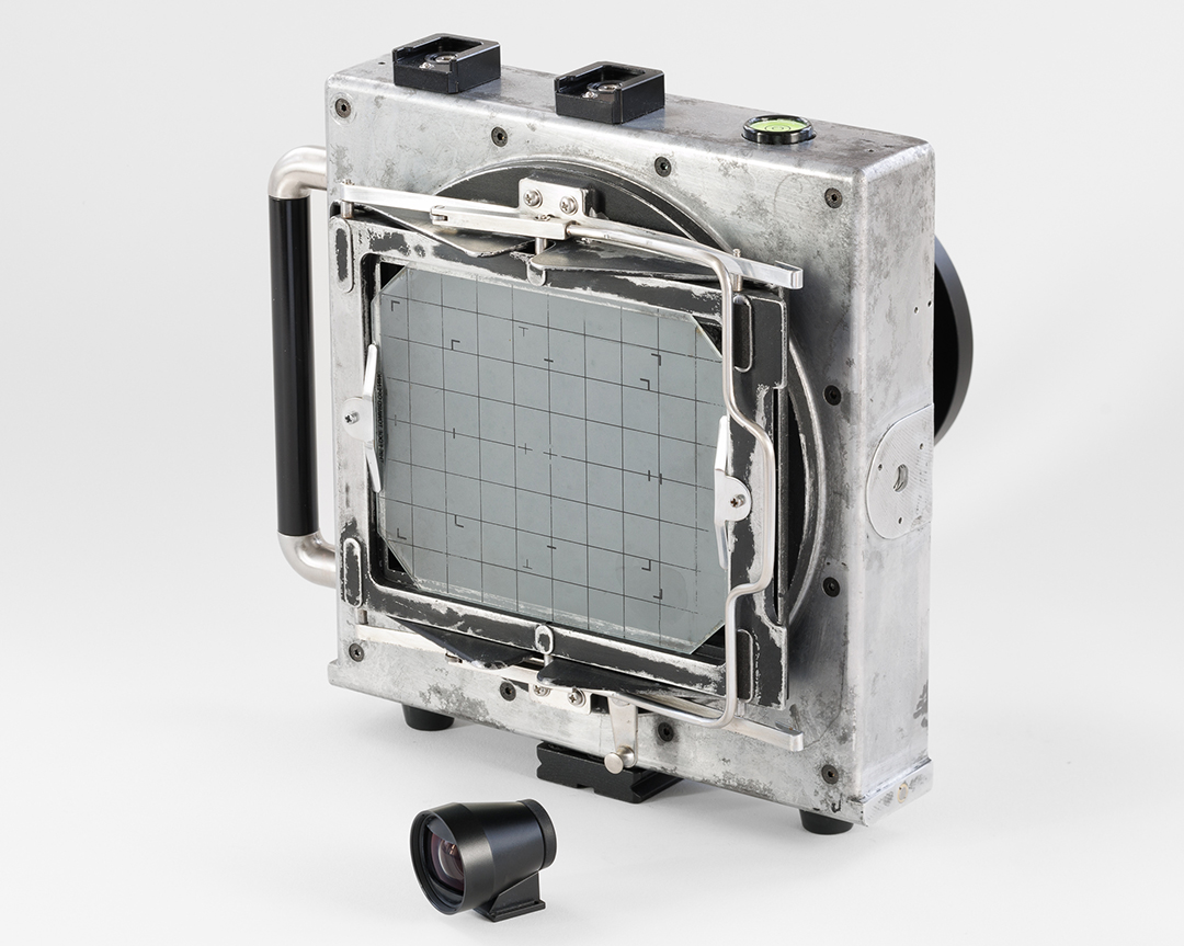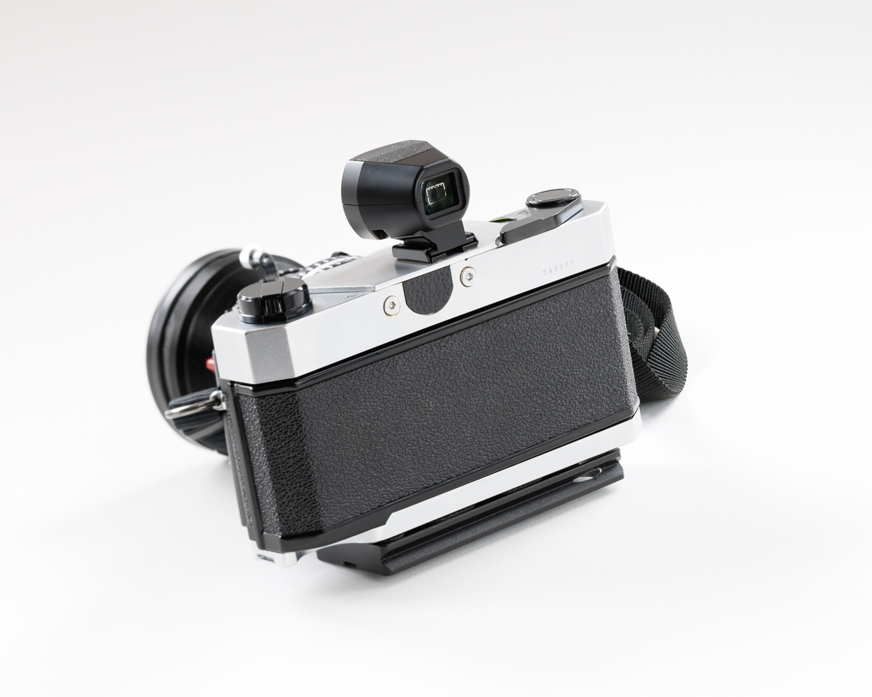 I thoroughly cleaned the entire camera inside and out. Then I sourced mirror and focus screen from eBay. I do need to shim the focusing screen a bit in order to collimate the focus screen with the film back. Lastly, I hacked together an adapter to use the focusing hood from a 4x5 field camera.