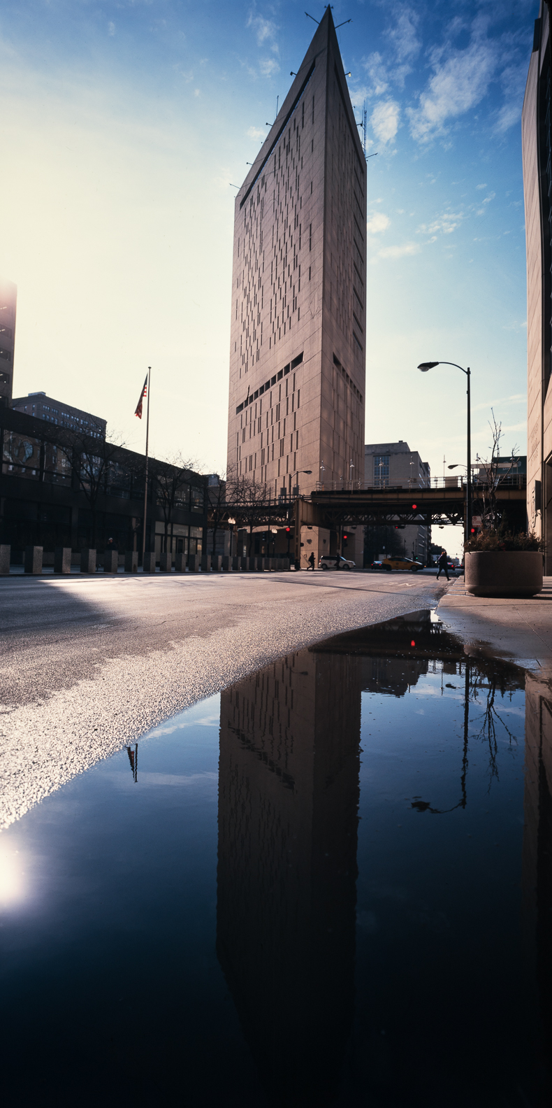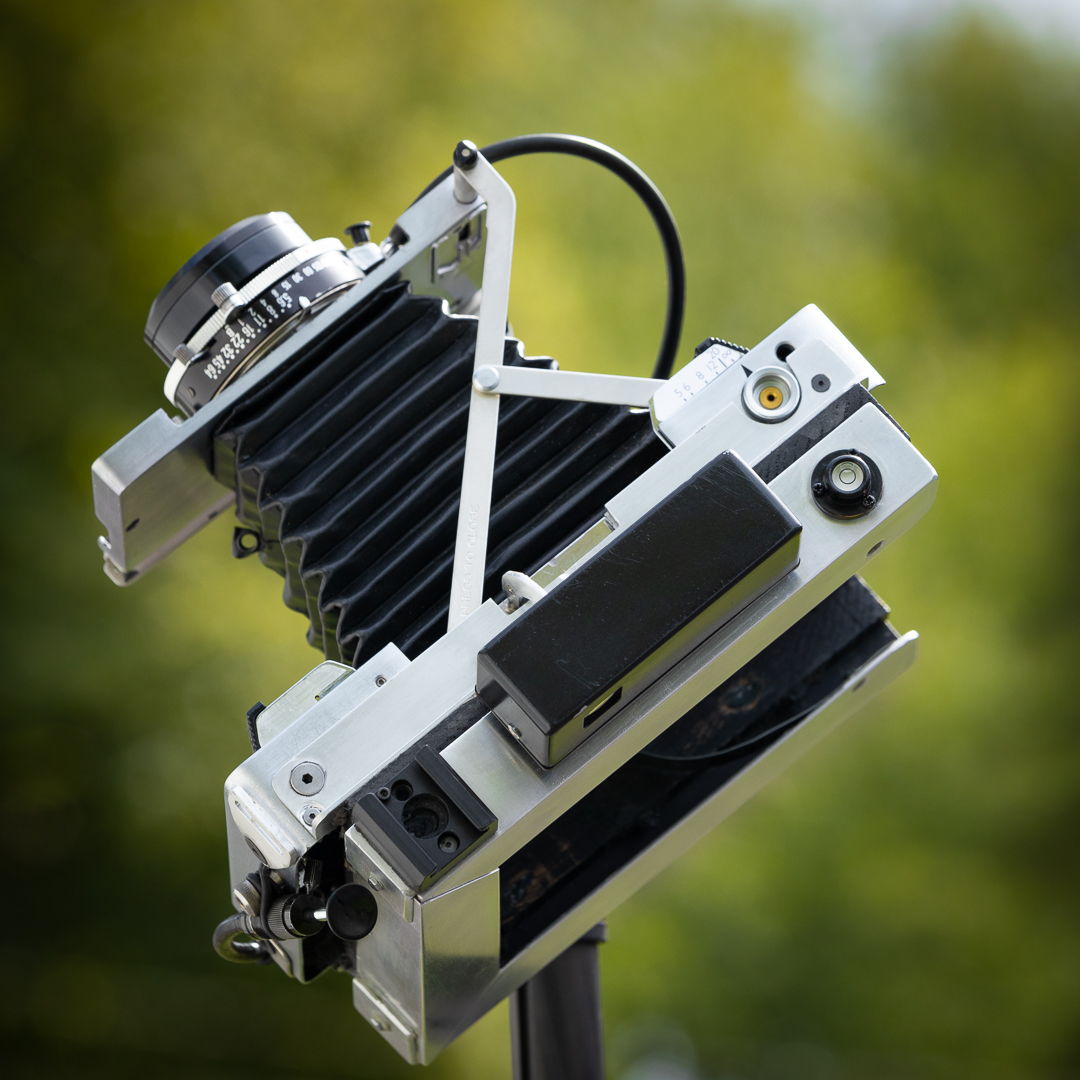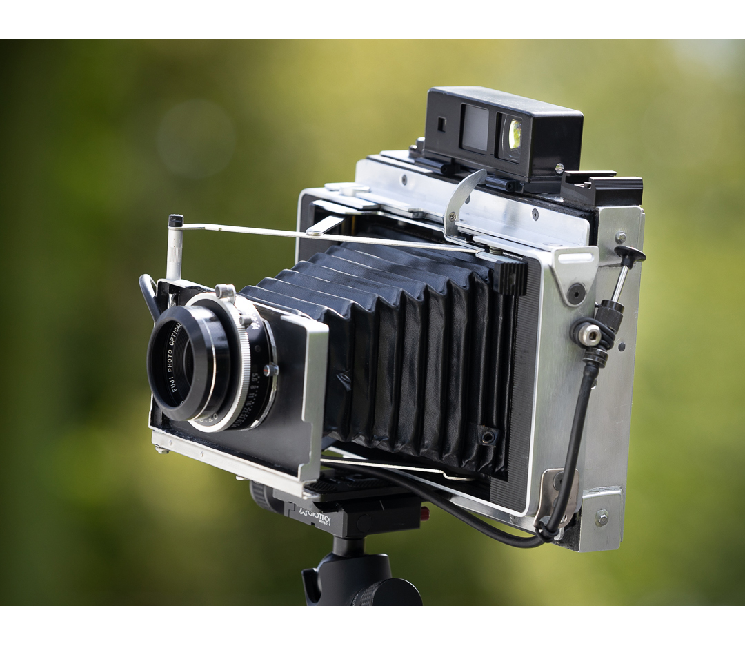 This camera is using the smaller of the two Bronica 40mm f/4 (made the 645 ETR) and it covers the three inch negative with only a little falloff. At f/8 its surprisingly good. The larger 40mm that was made for the 6x6 SQ system would probably cover with a little less fall off but I 'd rather have the mild vignette in exchange for a smaller camera. I'm using Oscars Oweson's 3D printed shade that gives the lens some protection and finished the cameras.