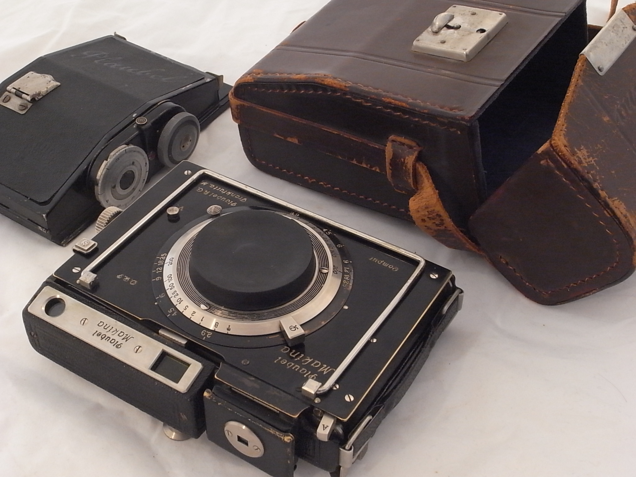 The set also includes the leather carry case which is in very good condition. The camera does not fit the case with the back attached, the case was made for camera and single shot film back to fit so it fits OK with the back cover on.