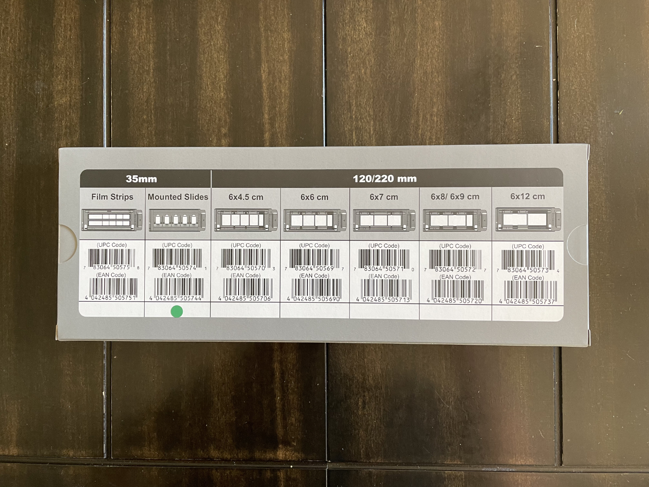 The scanner has been barely used as you can see the original manufacturer shrink wrap is also intact on the front. The scanner comes with film holders capable of scanning pretty much any frame that has ever been developed for 120 film. It also comes with an IT8 target for accurate color calibration.