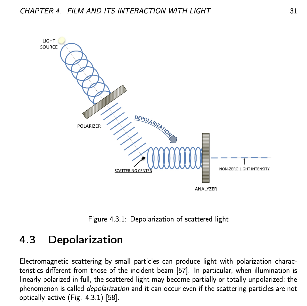 Basic physics tells us that polarized light can become de-polarized when scattered by the emulsion, but not necessarily the other way around.