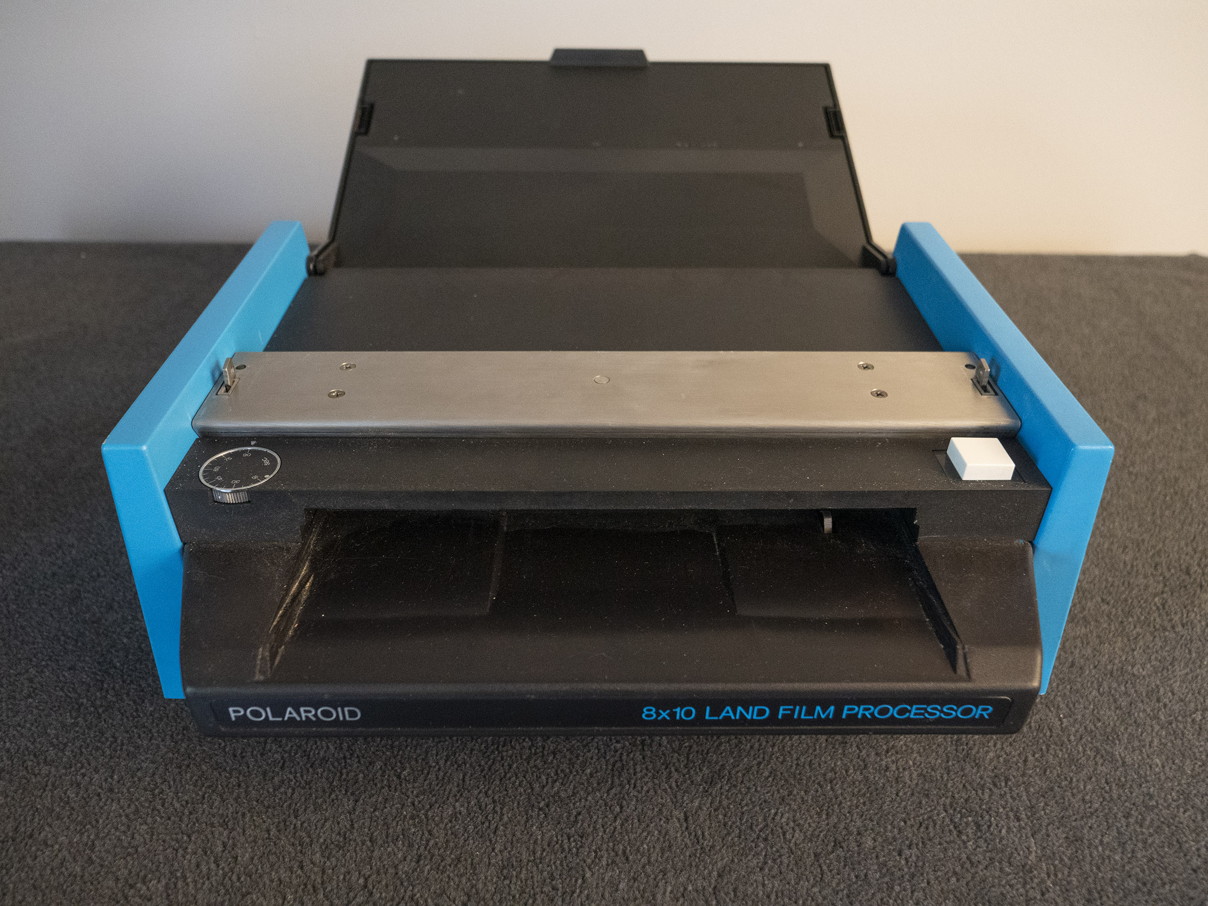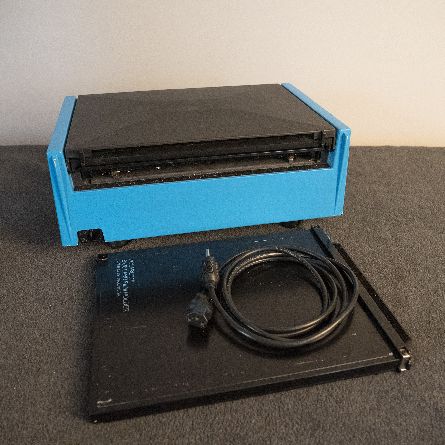 I bought the processor and holder as part of a package from a friend who was retiring. This is the model 81-01 with the 81-05 holder. I shot a few boxes of color film and ran them through this processes with complete success. The processor has been sitting unused in a box on a shelf and needs a good home. The good news is that Polaroid 8x10 is still being made both in color and black and white. Perhaps I should keep this and get back to studio portraits again. If this doesn't sell, perhaps I will do just that. I did verify that the processor powers up properly. The processor comes with a holder and power cord. The rollers will be packed up separate in the same box to avoid any damage during shipping. Shipping is via UPS or Fedex. I accept PayPal, and credit cards on my website. Shipping and insurance are not included in the price. I am located 30 miles north of Providence, Rhode Island for local pickup. The listing price is $500. Feel free to send any questions my way.