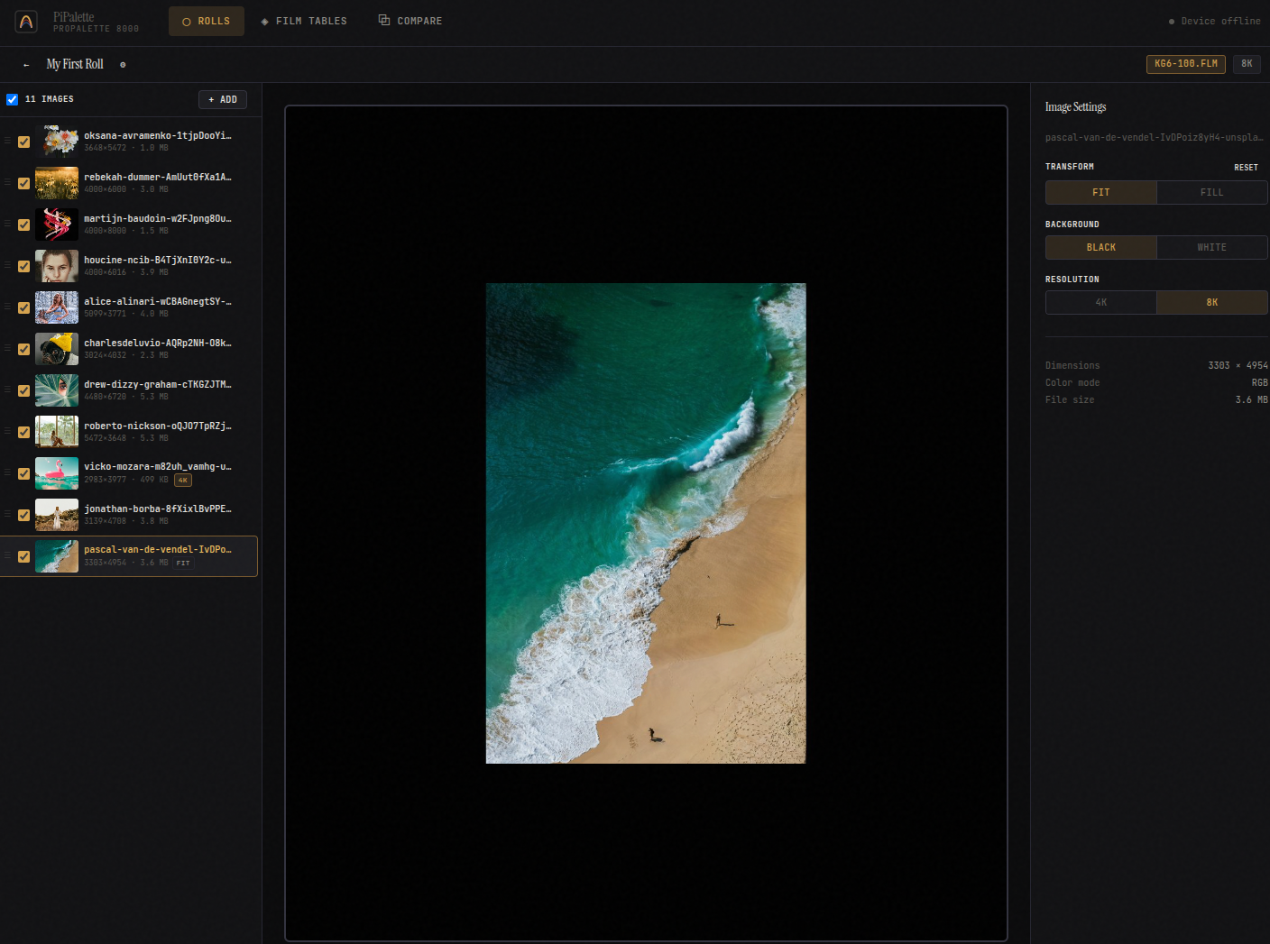 So far, I have only exposed colour. With a colour negative film, only a few images had stripes. The files are created as TIFFs. Is there a better file format? And what is the optimised size?