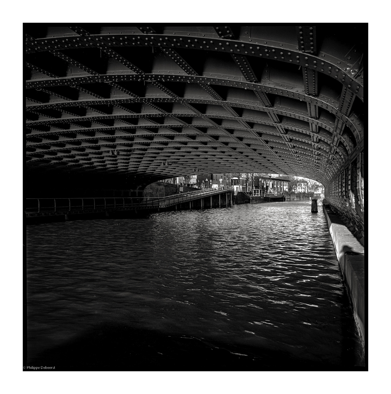 Under the bridge, Sint-Joris bridge, Portus Ganda, Ghent, Flanders, Belgium.