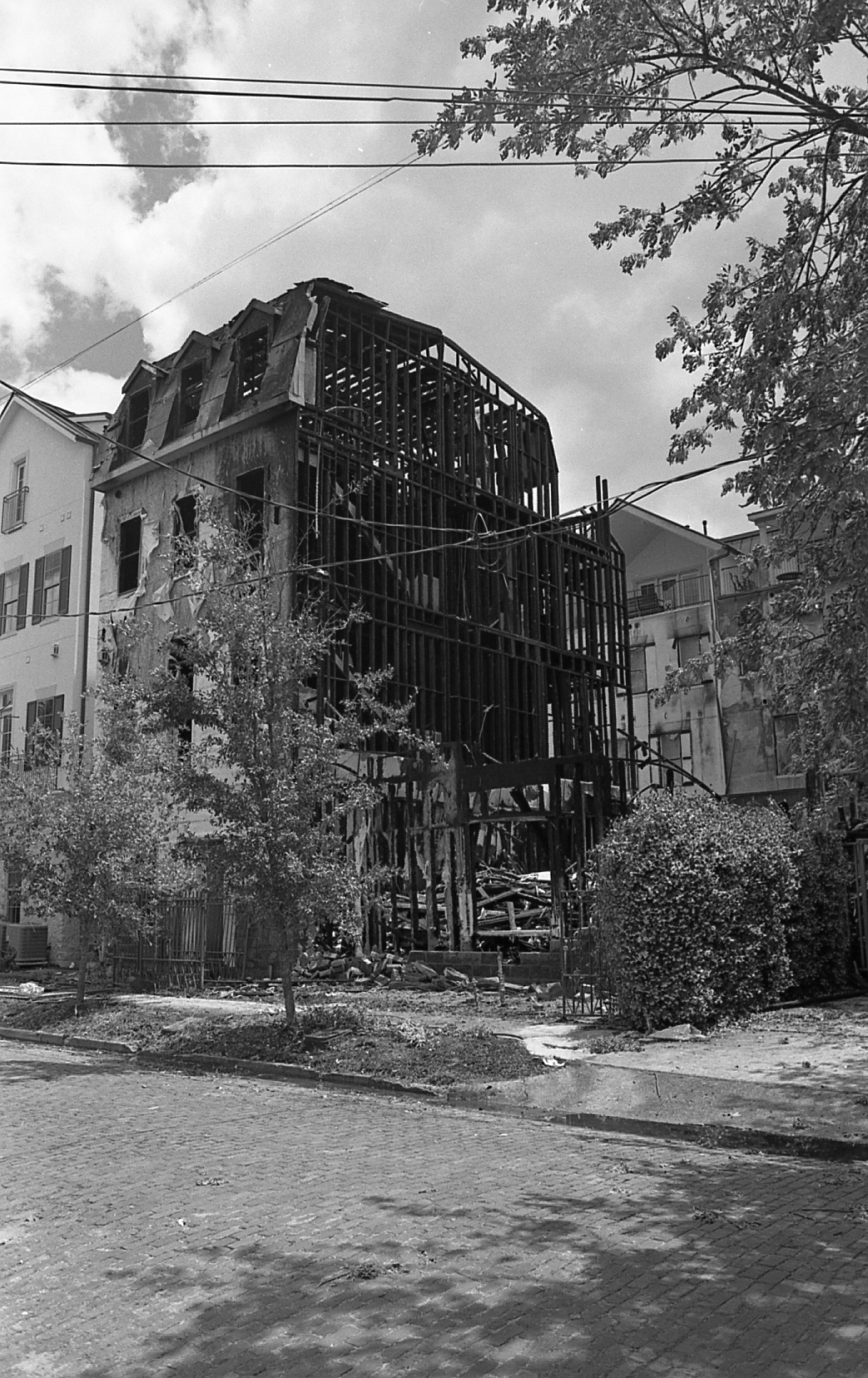 Here is a late-1800s or early 20th century cottage on Grand Isle, Louisiana, that survived Hurricane Katrina. Older houses like this (of which there may only be 5 or 10 left) were grandfathered and did not have to be elevated on piles, as did all newer structures. Grand Isle is the southernmost inhabited barrier island in Louisiana. This is Kodak BW400CN film, Leica IIIC, Canon 50mm f/1.4 ltm lens, hand-held. I scanned the negative with a Plustek 7600i film scanner.