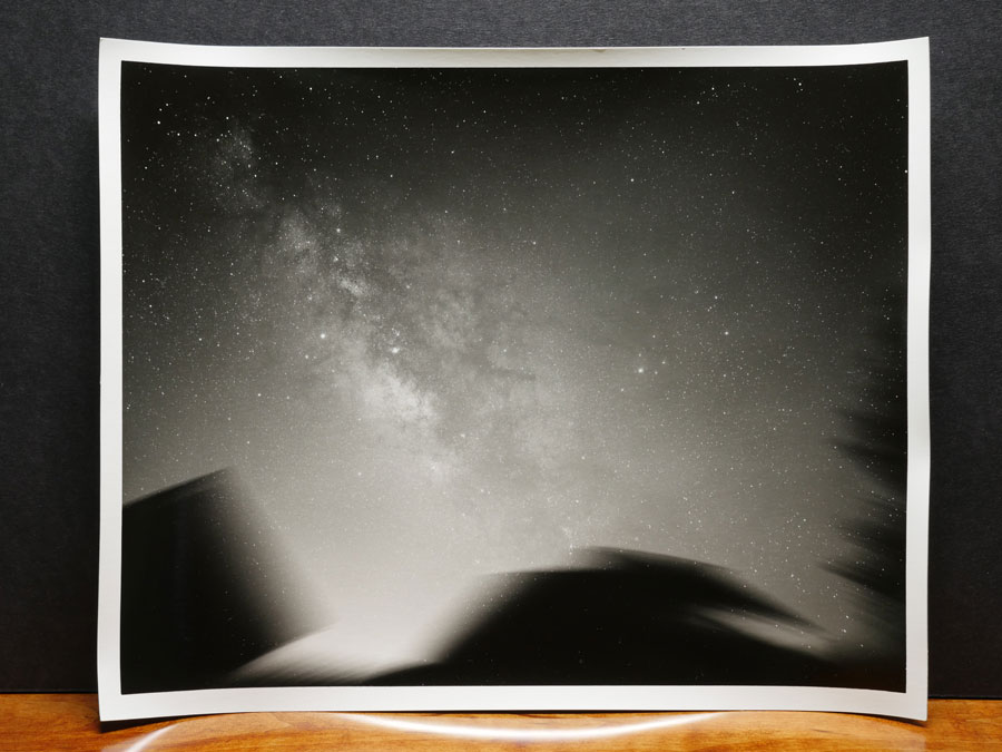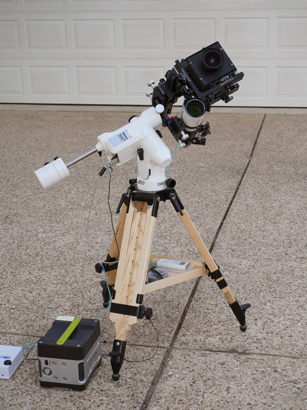 f/5.6. Too small an aperture like f/11 and the light level is so very low the film will get some stars, but won't record any nebulae at all no matter how long the exposure. Large format is tricky for finding lenses that work well wide open. I bought several lenses to find a few that did very well at 5.6. The photos are pinpoint sharp center to the very edges, no cropping, no distortion, no abberations.Wow, impressive.