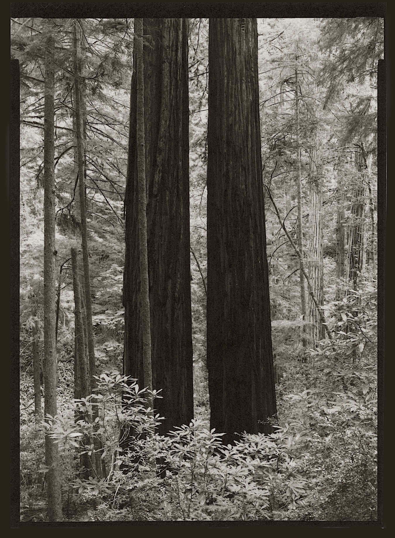 I have a few latent images sitting in a couple rolls of 120 FP4+ (Rolleicord) from the trip. I had a third roll (the first of the trip), but I dropped it and it unrolled in the water and mud...those images I will have with me forever. Close ups of redwood trunks...the bases of redwoods in the top 10 in the list of the tallest in the world...and I did not know which one was which, not that it mattered to the experience of being there.