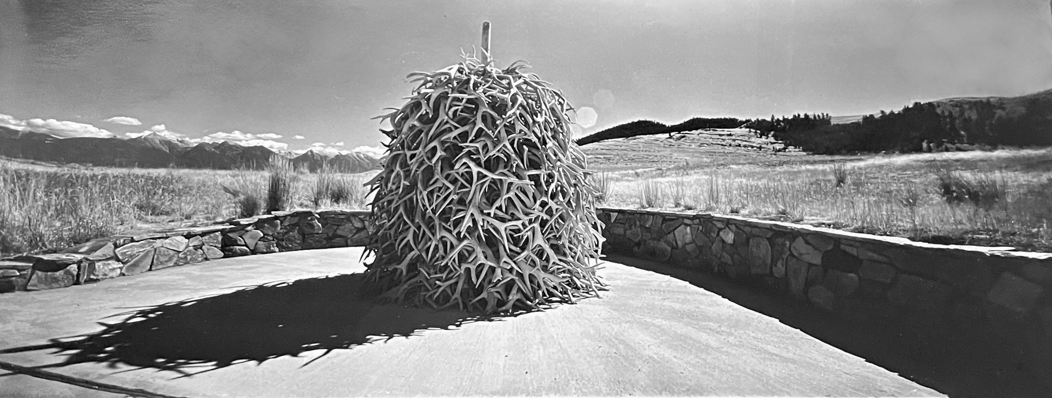 I shot this in Nevada near Great Basin National Park in 2014. I talked to the owner of the property, his brother had a business making arches and such with antlers. He gathered them from the desert and mounted them to a steel frame. Canon AE-1 with Fujifilm X-tra 400.
