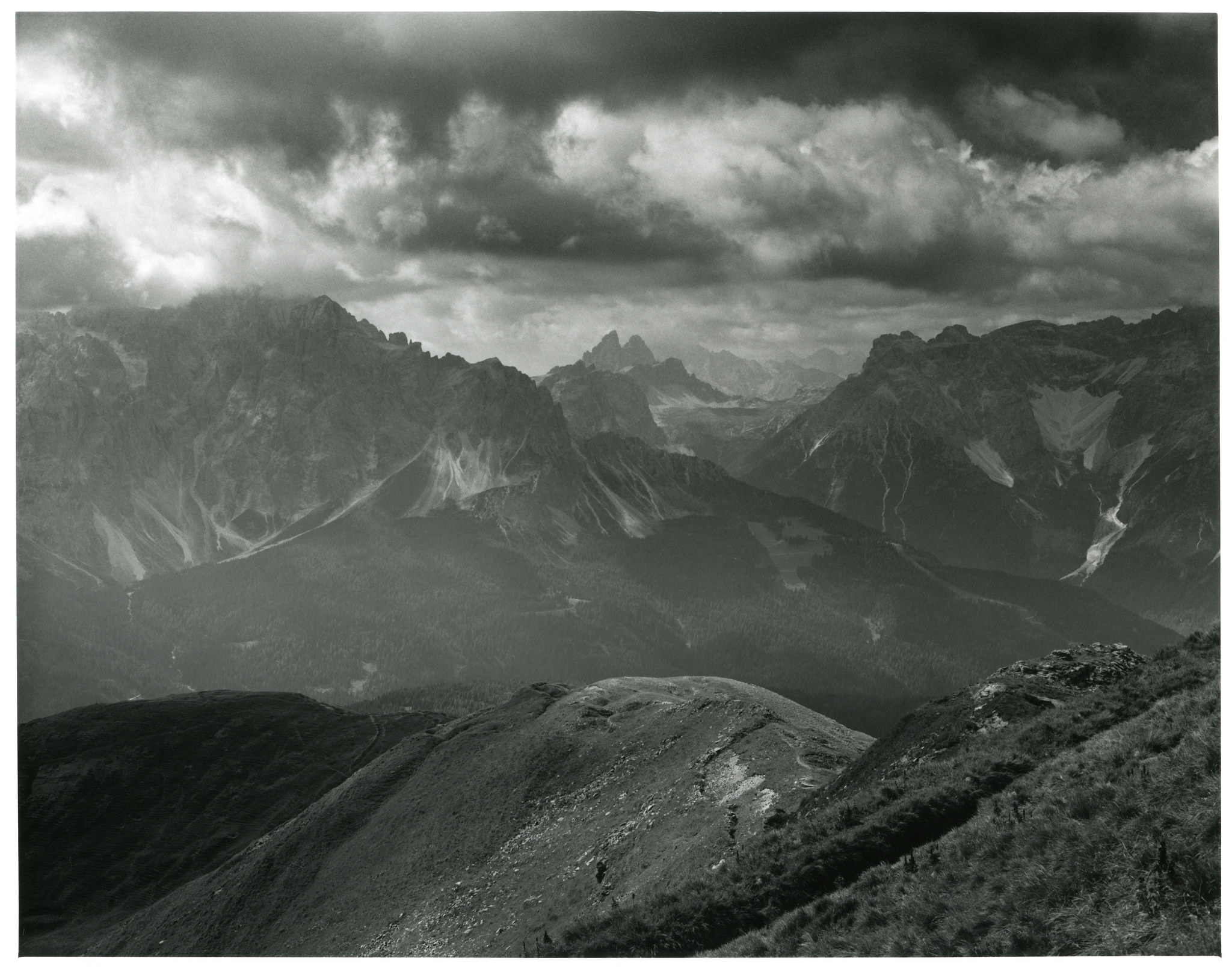 At the toe of the Peyto Glacier. Image made with homemade 4"x10" box camera/ 90mm Super-Angulon XL/Bergger 200. Darkroom print