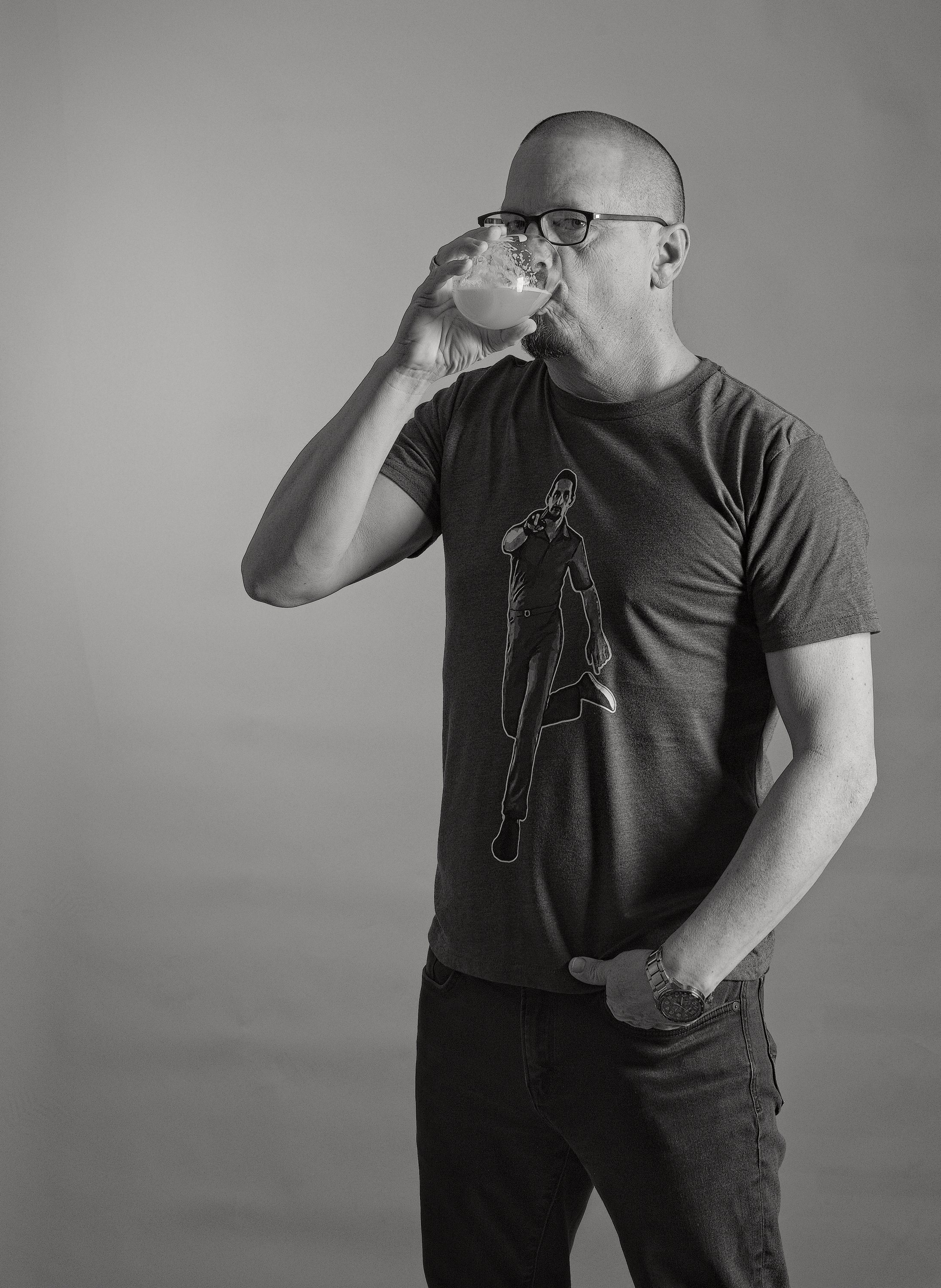 Lighting was simple - I fired two strobes with the standard lamp shade modifier, off the back wall to fill the room with light. It was a crap shoot, but it worked perfectly