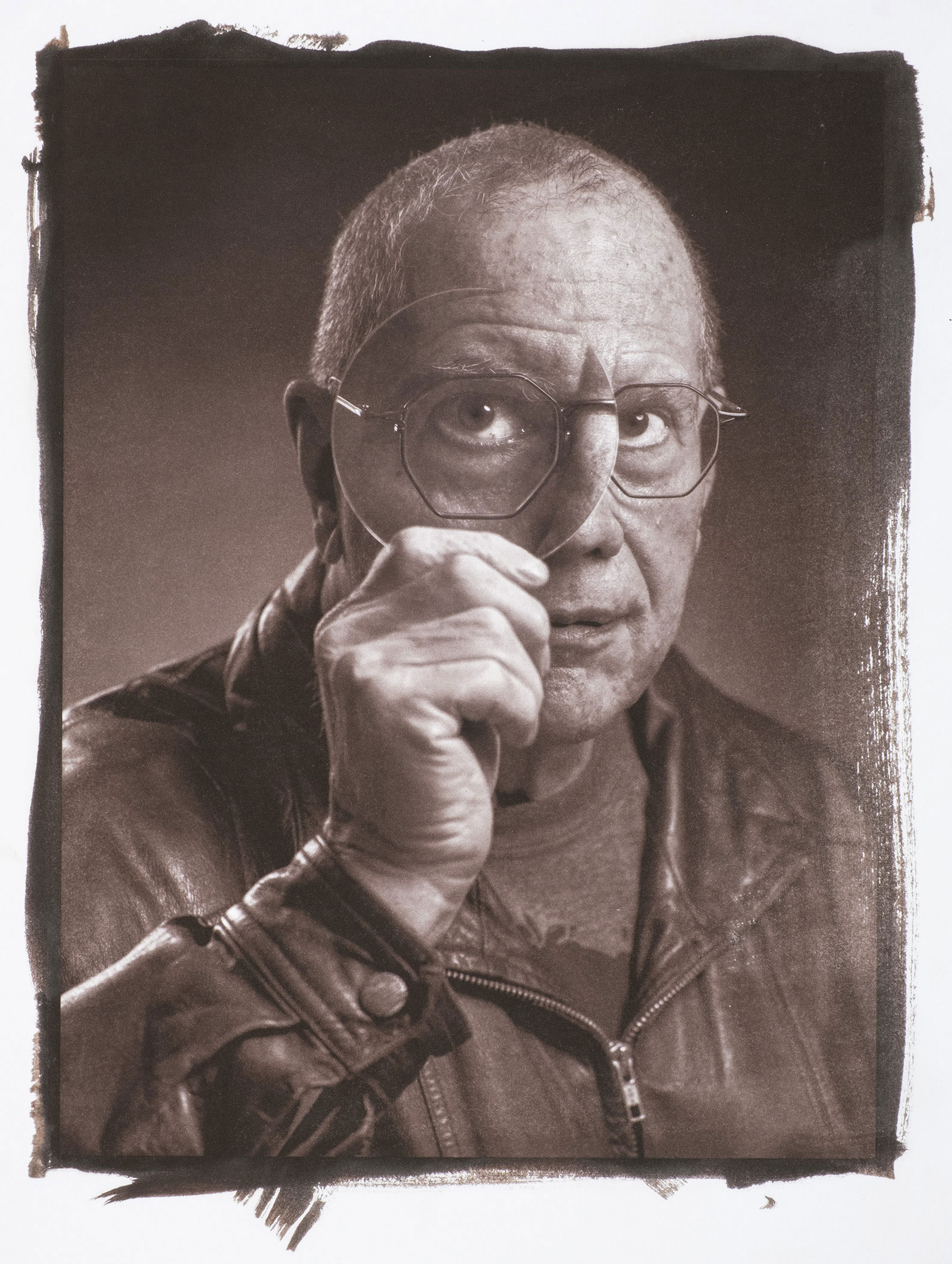 I tried several versions of looking-through-a-lens for this self-portrait. This is the one I liked best. This is a kallitype print.