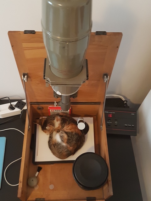 Black dog's color print of a coat in display with people's reflection. Only color shot for this exchange (so far ?) . Works great for me!
