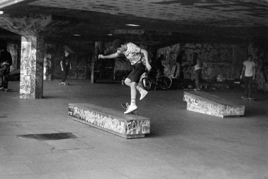 Testing out my Praktica B100, after it had been in the garage for a good decade. Expired Acupan 800 film (in Microphen) plus Agfa APX160, also long expired. Prakticar 50mm lens. Shot at London's South Bank while I was waiting for a committee meeting in June.