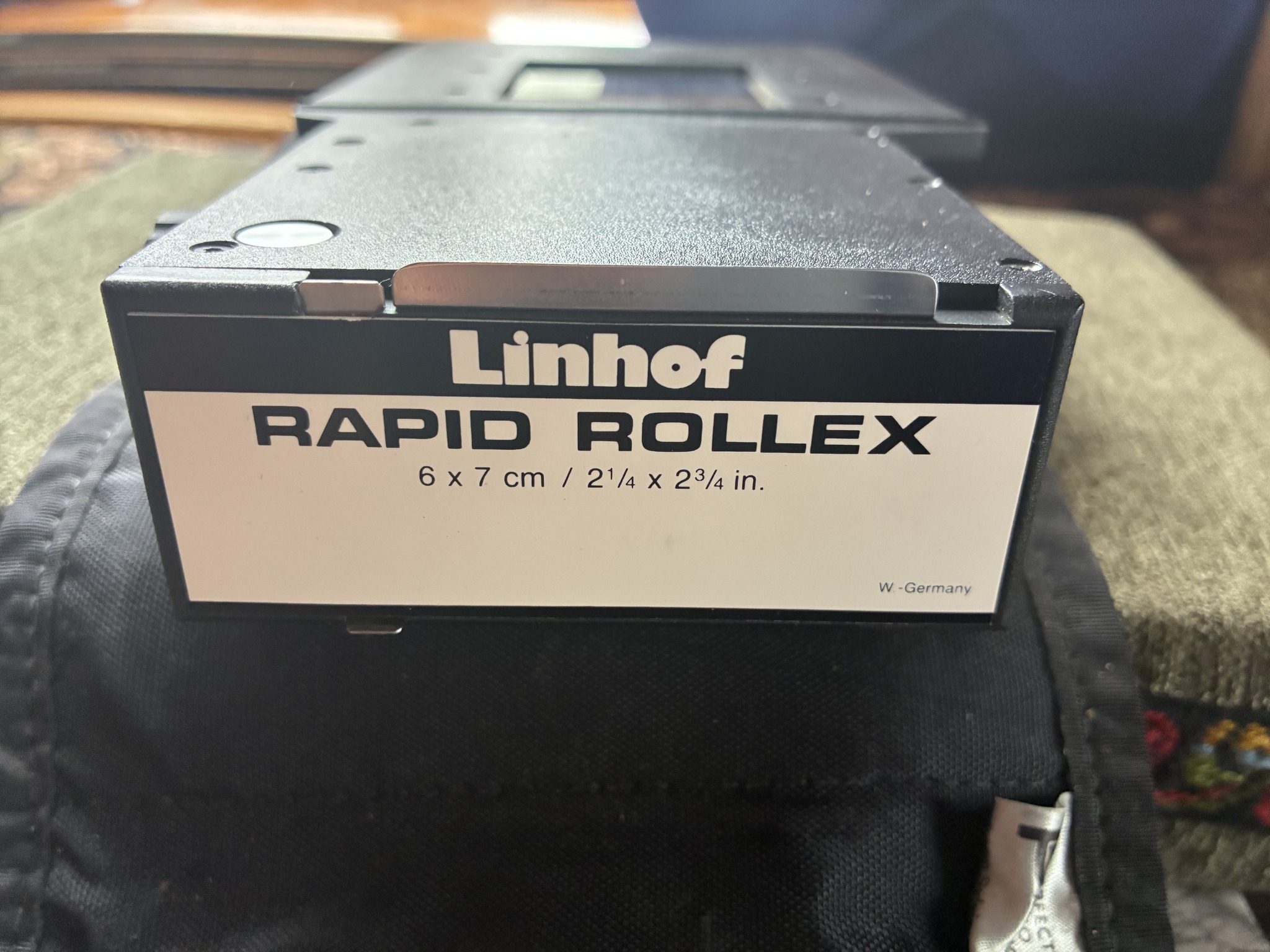 I am selling a Linhof Rapid Rollex 6x7 roll film back for a 4x5 camera.