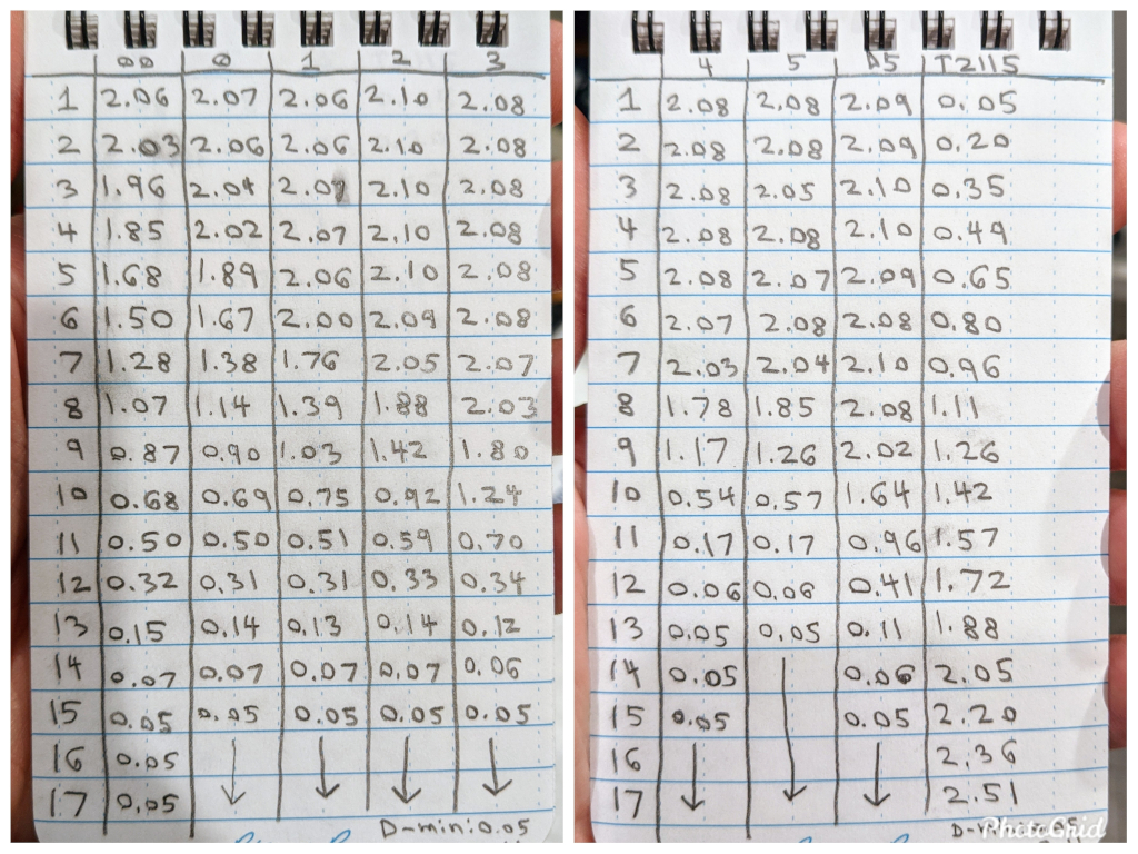 Here's an example of what went into my notebook after doing a lot of step wedge exposures for my last round of contrast calibration for my RH Analyser:
