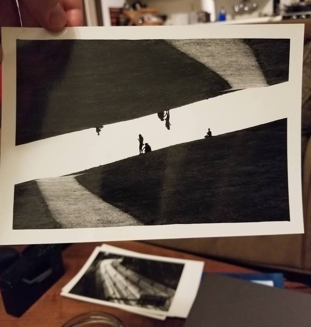 A white sky is just unexposed paper! This was a fun print from last year where I flipped the paper 180 degrees in the easel after the first exposure and re-printed the whole image in the unexposed sky. I did end up having to make a simple mask though. Even though the sky printed totally white, it was enough to pre-flash the paper and the second exposure was significantly darker.
