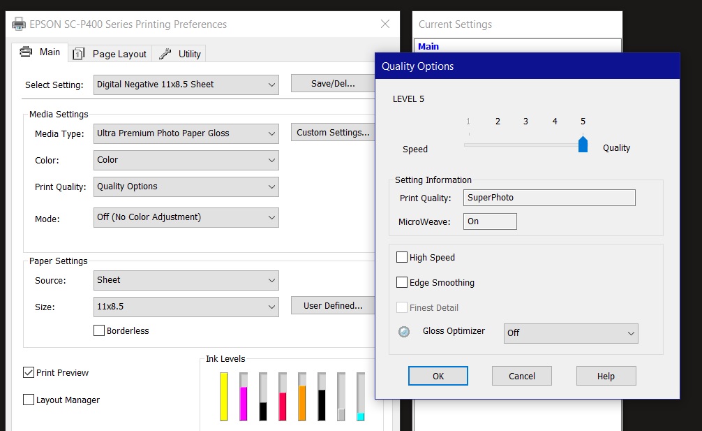 Output res=Photo (where is this?) In print Quality --> Go with Quality Option 5 with SuperPhoto, Microweave on