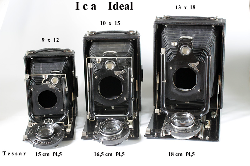 _ Reicka (folding 10x15, no number of type) s/n 81xxxA (~1909) and, smaller, E2 (maybe a factory modification) Tessar CZJ 16,5cm f6,3 s/n 385xxx (~1920 I think it was changed) Compound without s/n ; it strongly looks like Wuensche foldings, but has ICA named body.