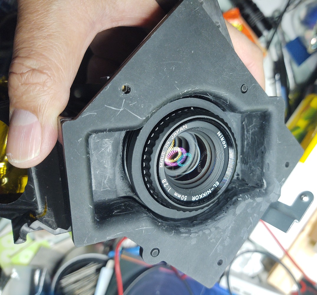 As for the adapter, I need to add a helicoid to my adapter plate and then an adapter helicoid for the Nikkor. I sort of tested the magnification and was slightly disappointed. I mean they are for enlargers right? I'll probably get a 20mm or 30mm Nikkor. In the meantime (I sound like I can actually make an image), I have a vintage vivitar 20mm which I also tested for UV. Interestingly it did actually output UV light. Slightly dimmer because it is a much enlarged image. I'm gonna try to get both lenses to work on the same plate helicoid.
