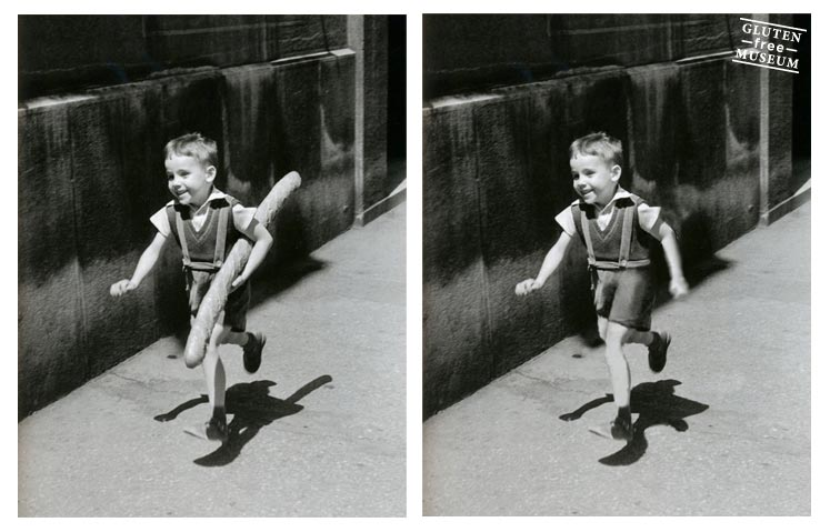 The other clue is that the child in the photo on the right is not carrying an 8' baguette, which may also be related to the gluten-free website.