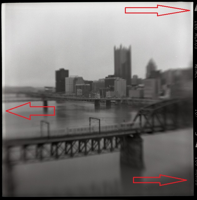 Also, the film (120) was cut and taped into an 8x10 holder, so it should be exposed evenly from edge to edge.