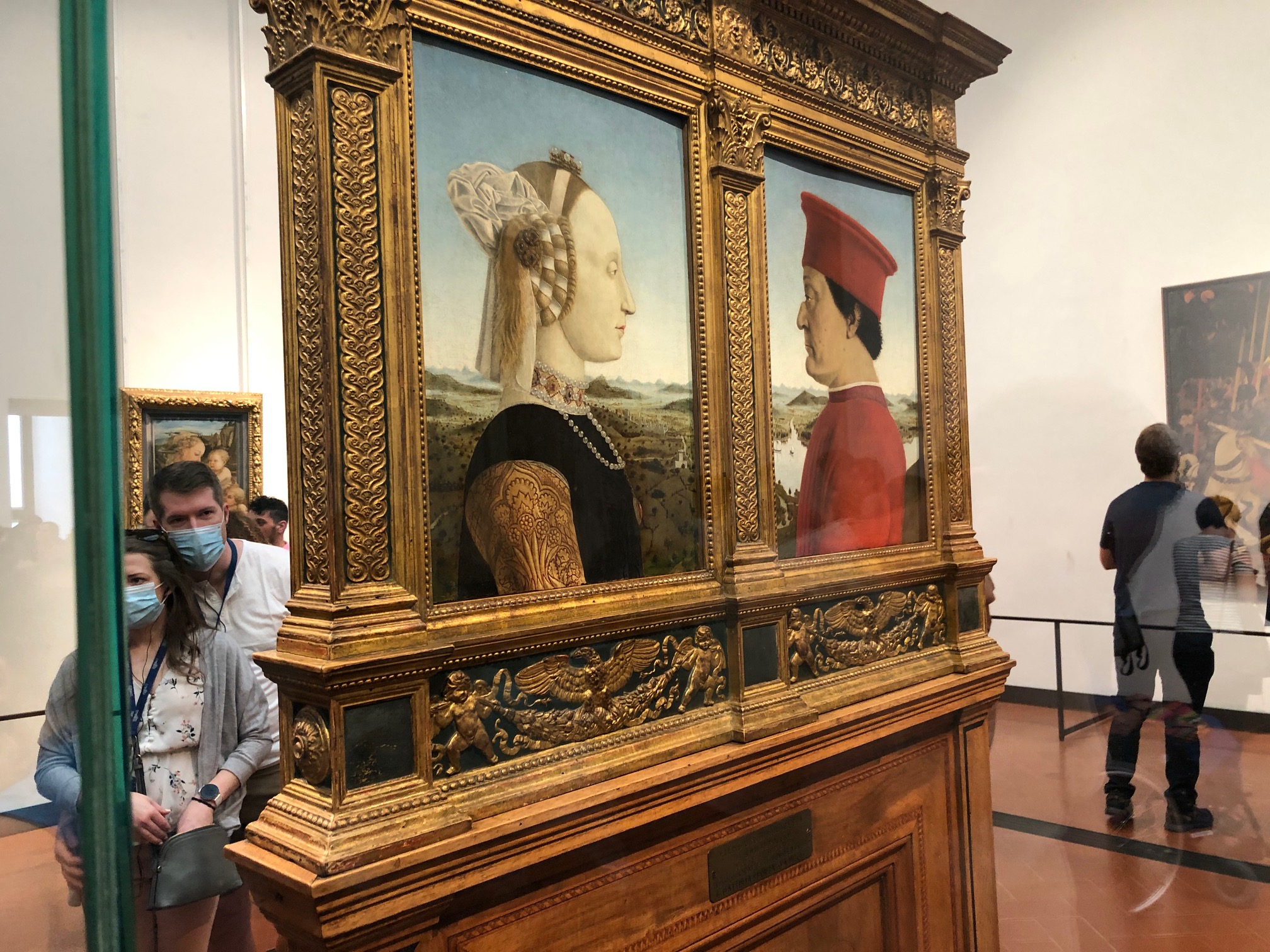When I visited the Uffuzi museum/gallery in Florence, Italy last May I notice a sign that indicated that non-commercial photography is permitted but taking pictures of people is not. It is near impossible to take photos of the art without including people and plenty of people were doing do, including me. Any people included in the photos are incidental and generally not identifiable, particularly due to a mask requirement. I like including them as a refence for scale.