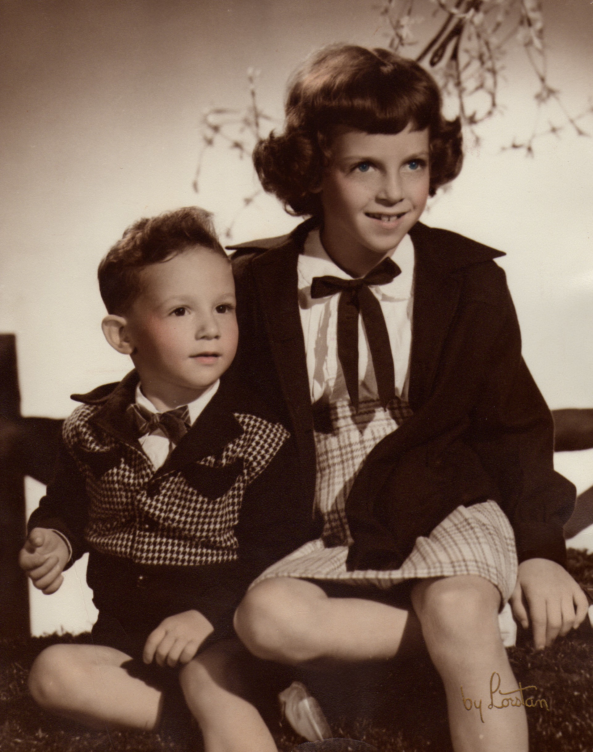 Me and my sister Marilyn, who passed away, This was how they did it 75 years ago with BW film and toning in the colors. No disembodiment. Formal shot in a studio. By the way, I didn't need permission to post it here. :wink:
