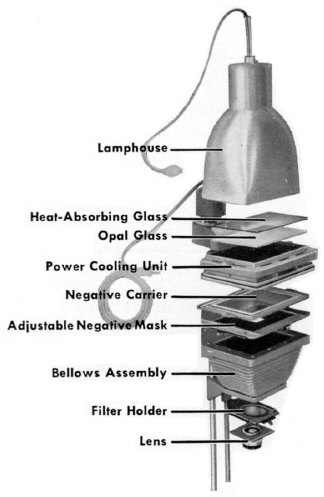 Thanks for posting that. Not my head exactly but I expect it is a similar set-up although I don't believe there was a cooling unit on this one. Most of the negative stage area is made of wood. I should probably put a layer of heat absorbing glass above the frosted glass but I doubt my local glass shop will have anything. Right now I'm using two peices of glass for the negative carrier, which helps protect the negative from heat.