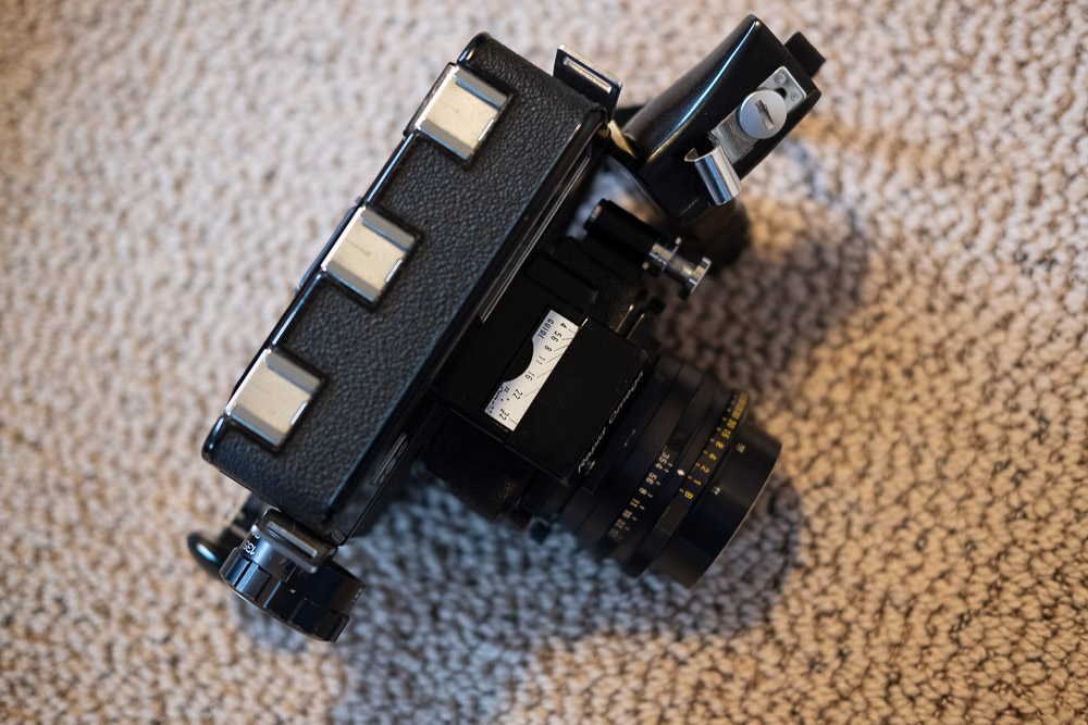 - Rapid Omega 100 body with handgrip, two 120 film backs, bonus 220 film back, and 90mm f3.5 Omegon (adapter ring has been removed and the lens now accepts 49mm filters): $250