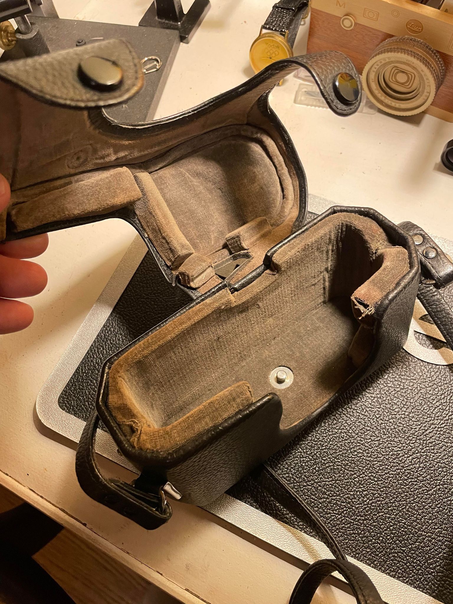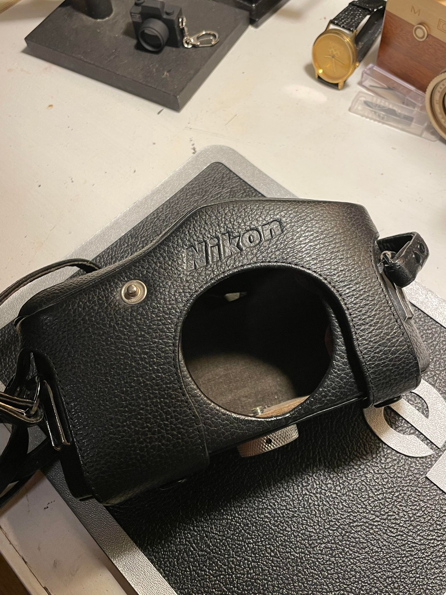 Selling a super rare Nikon blimp case for the Nikon F eye level body ( I think....hard to find much about these). Missing the nose cone to cover the lens, but works fine for shooting.