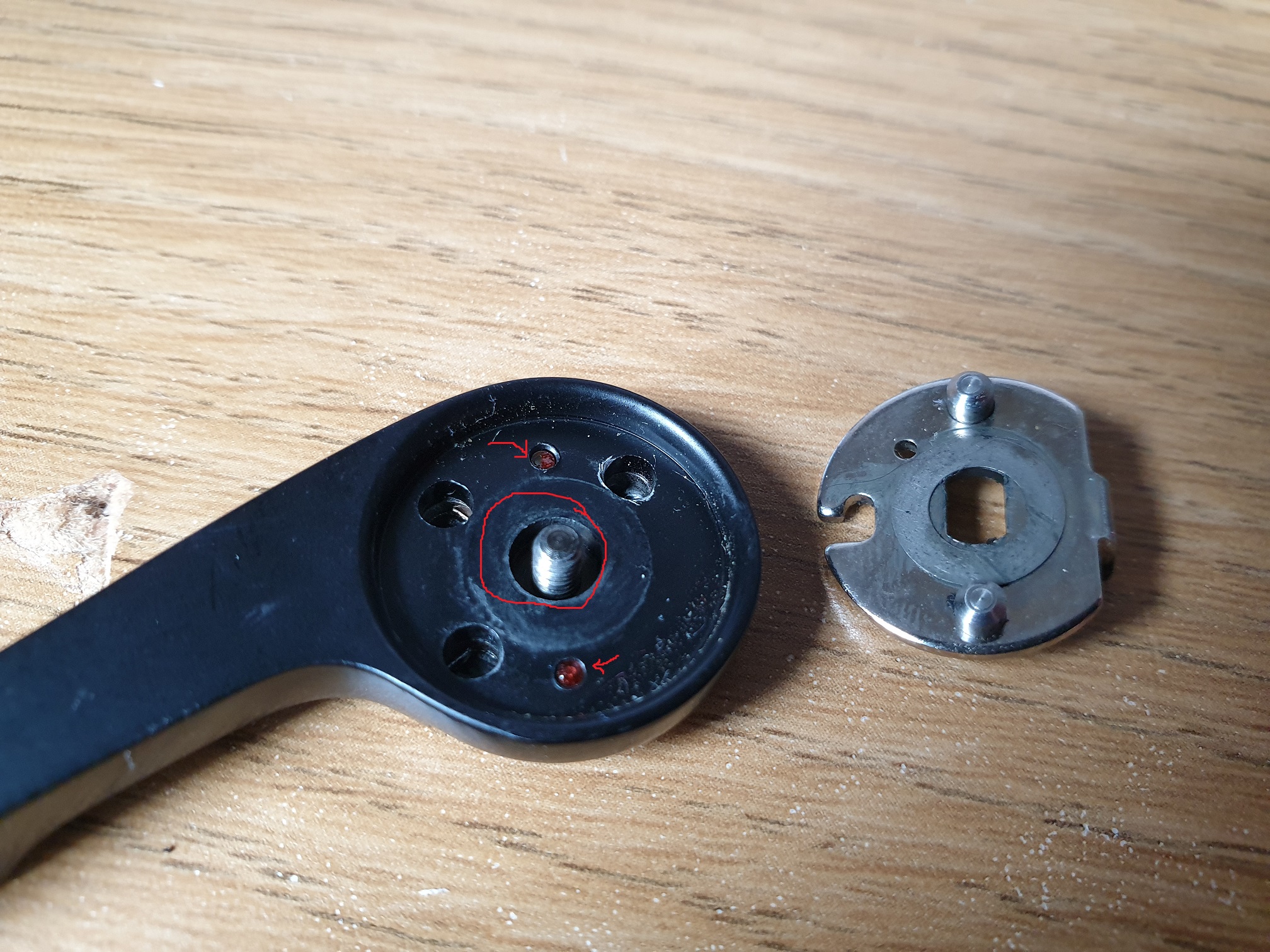 Nothing looks broken and I think (hope!) it's a just a screw that has come loose from the mechanism - screw in question circled in the first pic attached. I'm hoping if I can get at the screw head and tension the spring in the body I can screw it and that metal piece in the pic on to the back easily enough. Firstly though it looks like I need to remove the plate on top of the winder to get at the screw and this might be the tricky part. It looks like the plate is held with two very small rivet-type things which are for some reason painted red (and circled red in the picture). Before I mess with it too much I thought I'd post this to see if anyone has been here before and might save me from breaking something.