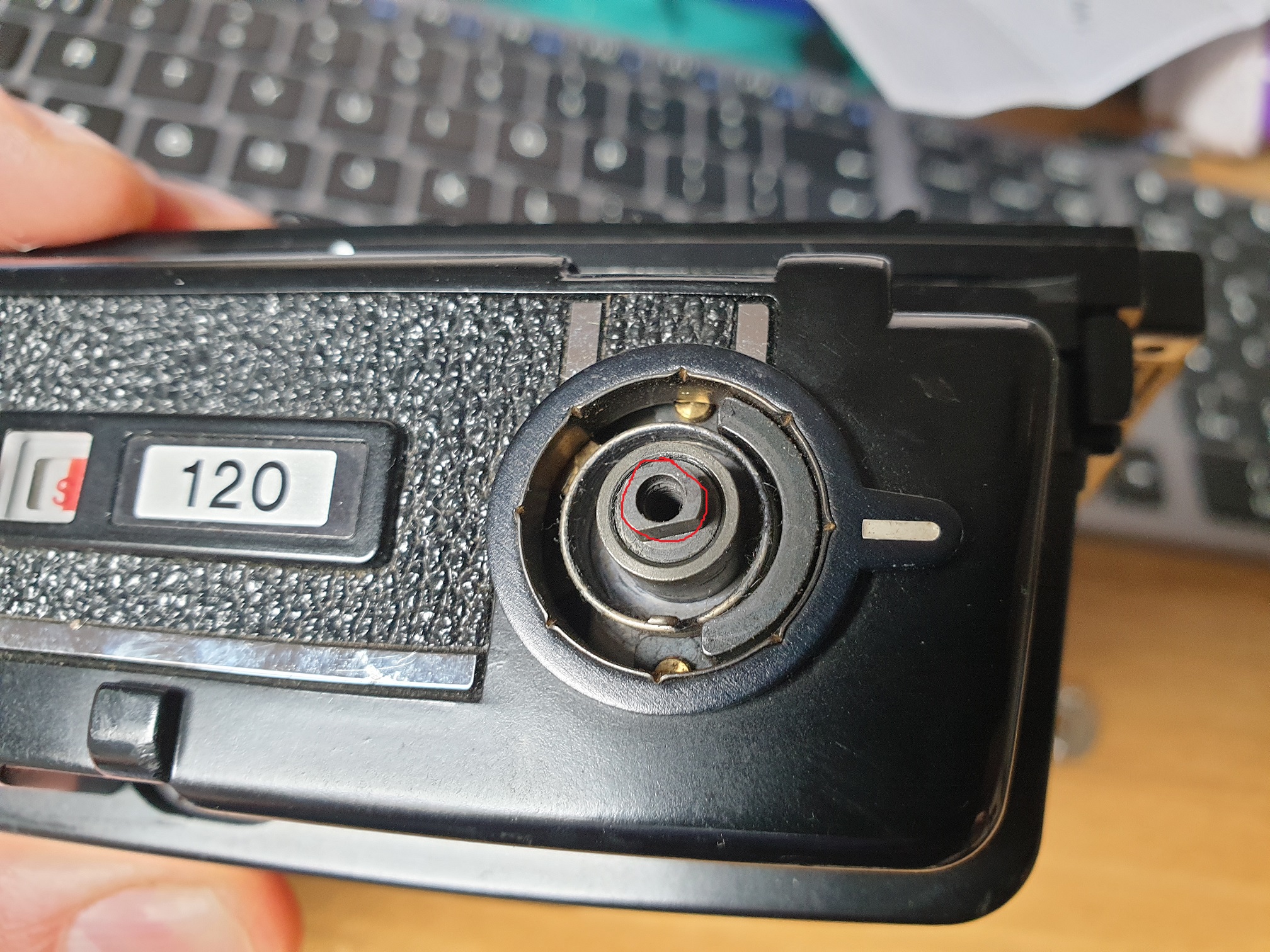 As the thread title says, the winding lever of my RB67 ProSD back has fallen off. I had noticed a gap was appearing between the winder and the body so it wasn't a shock.