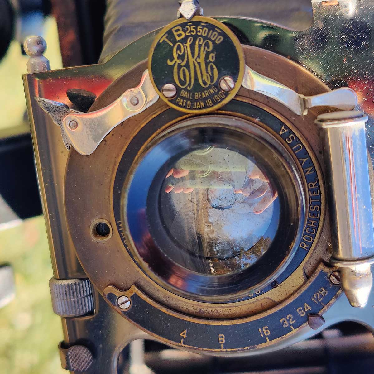 Composition was kinda hard. I was on a tripod and that helped, but the "viewfinder" is just a little 45 degree angled mirror you look through and it's a tiny image. Confirming level was difficult, so I'm thinking I may want to take a level with me next time, or see if I don't have a better tripod head somewhere with a level on it. I was aware I can't really fix the crop in post processing like I'm used to (e.g. I'm full frame contacting printing this). Actually taking the picture was super anti-climatic after all the adjusting and maneuvering of the tripod.... just a tiny little click, barely audible.
