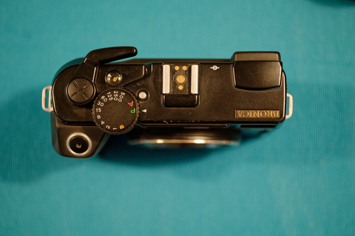 A fabulous medium format camera in a very compact form. Great condition, with slight signs of use on the body. Electronics, winding all work great - I’ve never had an issue. Viewfinder is bright and clear, with a contrasty focusing patch. Frame spacing is right on. The meter in this camera is great! Very accurate.